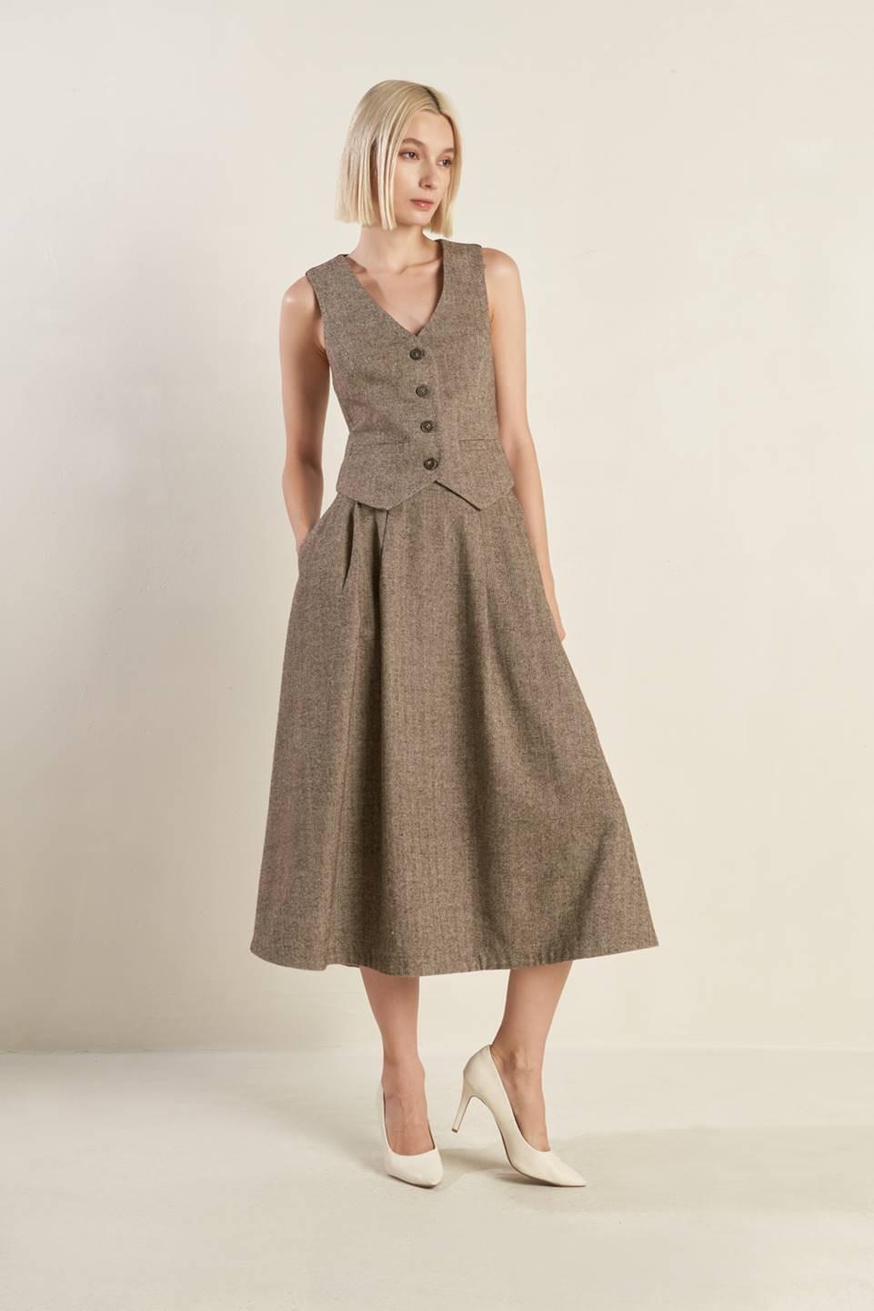 A woven vest with front button down closure. Matching set VIBRANT DAZE WOOLEN PANTS