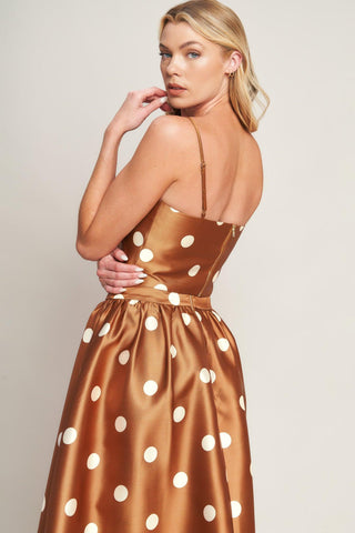 GOLDEN SUMMER POLKA WOVEN MIDI DRESS