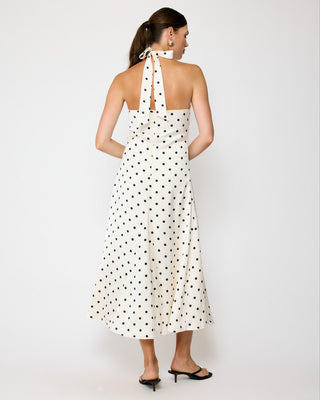 VINTAGE WHISPER POLKA WOVEN MIDI DRESS