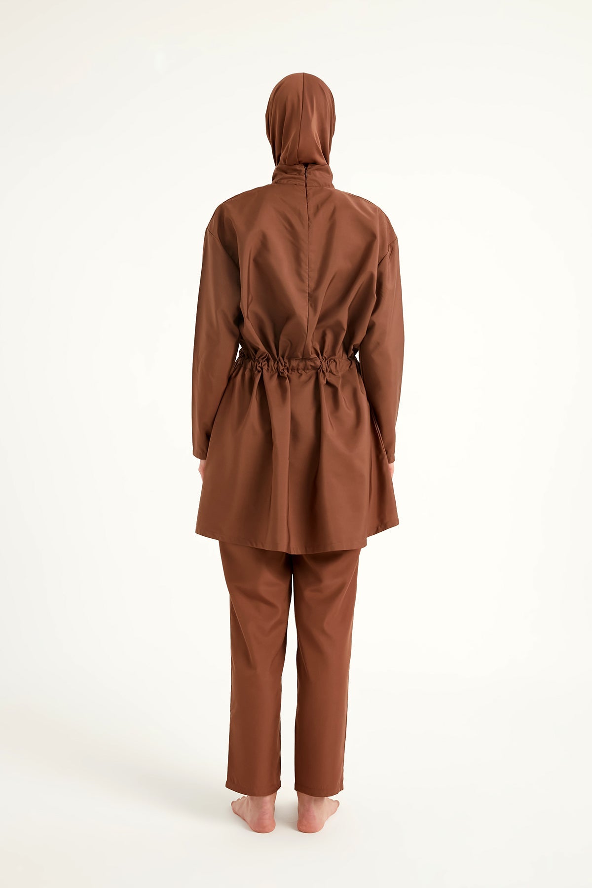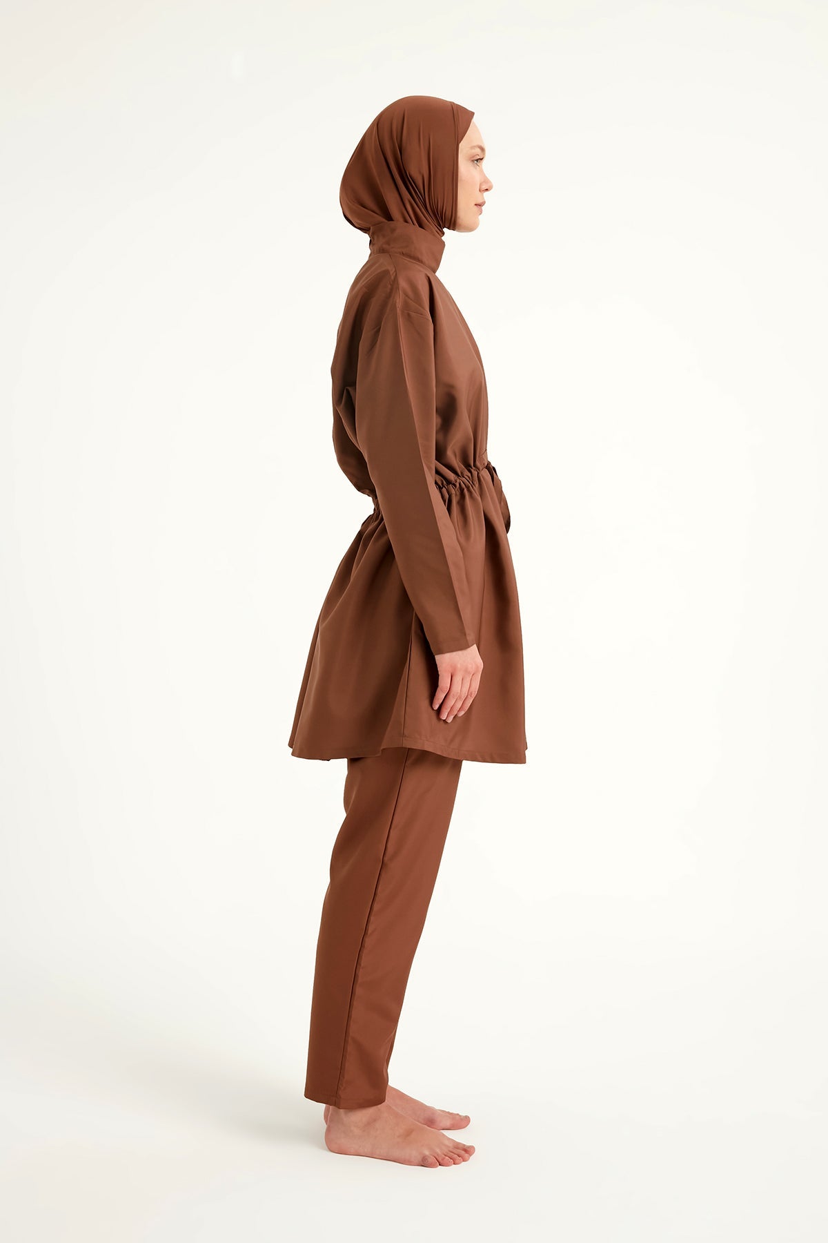 Andalus Brown Full Coverage Burkini Set with Front Ruching A2502-3
