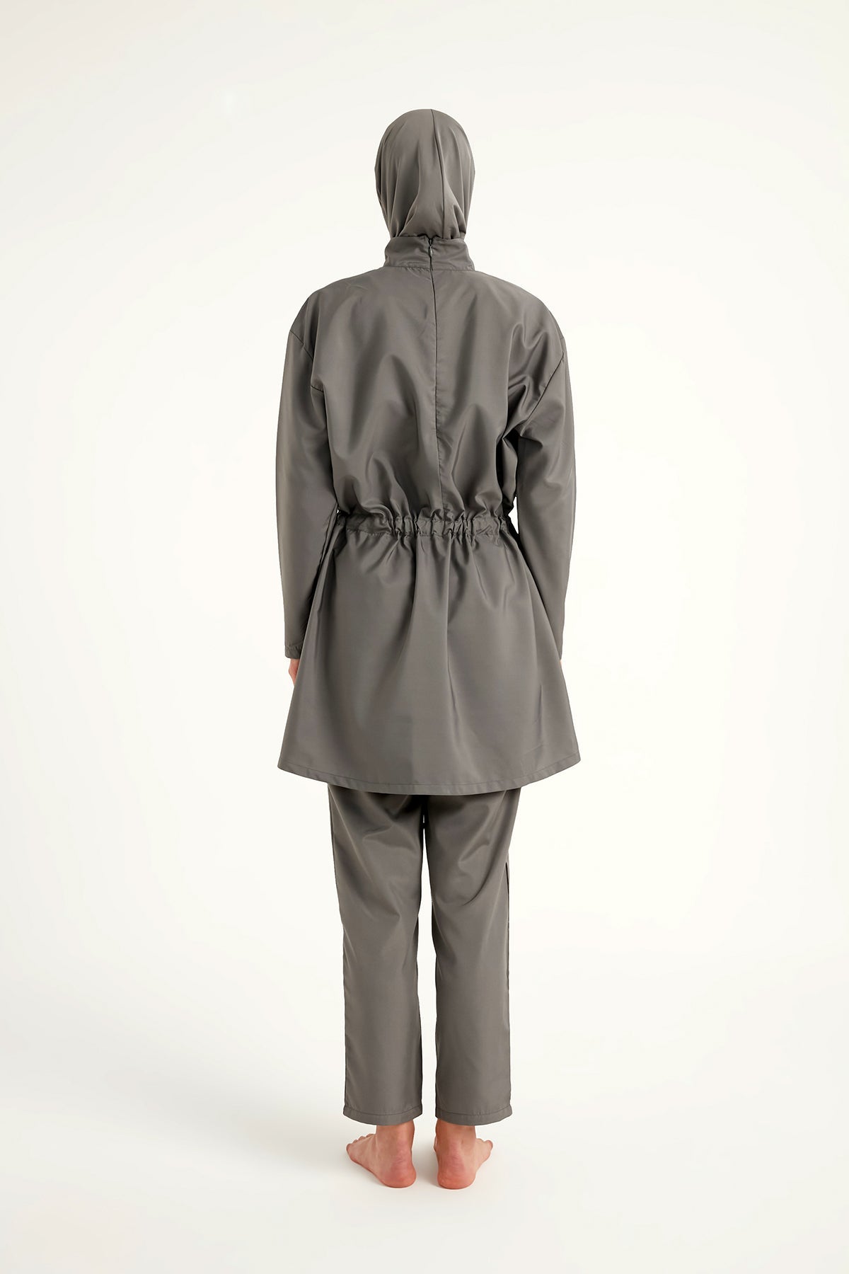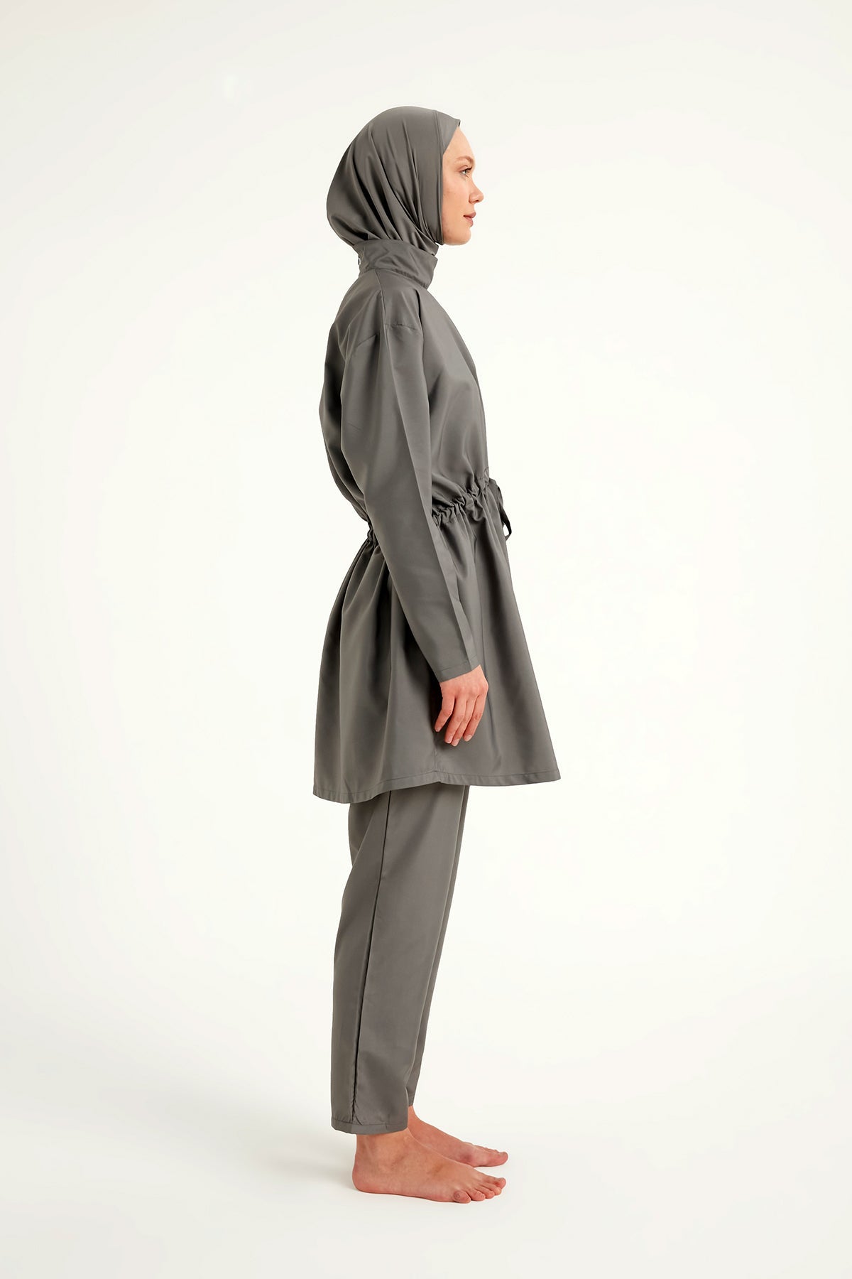 Andalus Charcoal Full Coverage Burkini Set with Front Ruching A2502-4