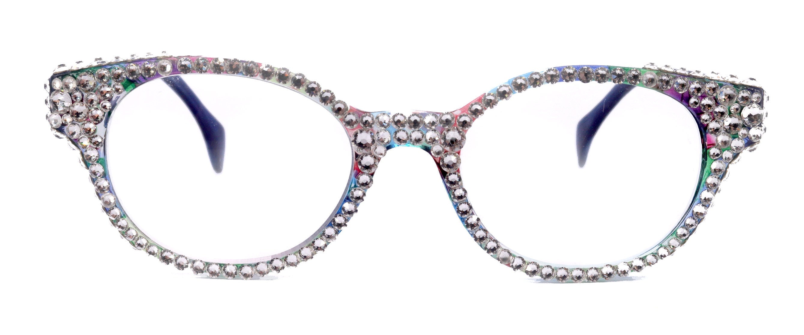 Autumn, (Bling) Reading Glasses For Women W (Full Crystals) Genuine European Crystals Round Frame (Blue, Purple Floral) NY Fifth Avenue