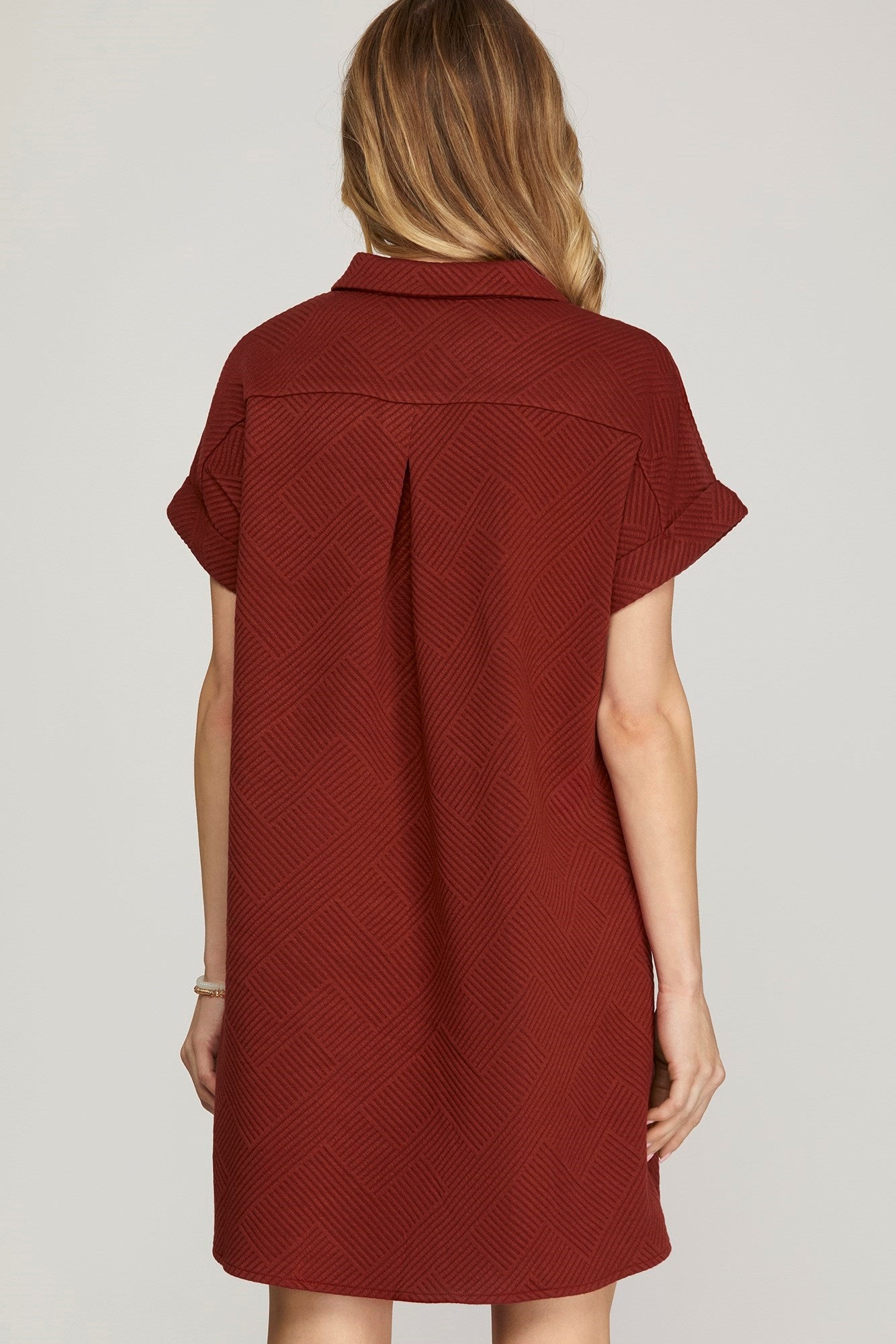 The drop shoulder design gives it a relaxed, laid-back fit that's perfect for layering over your favorite tees or turtlenecks. The button-down front adds a touch of sophistication and versatility—you can wear it fully buttoned up for a sleek look or leave a few buttons undone for a flirty twist. And let’s not forget about the textured heavy knit fabric that feels so luxurious against your skin, making every moment in this dress one of pure comfort.
