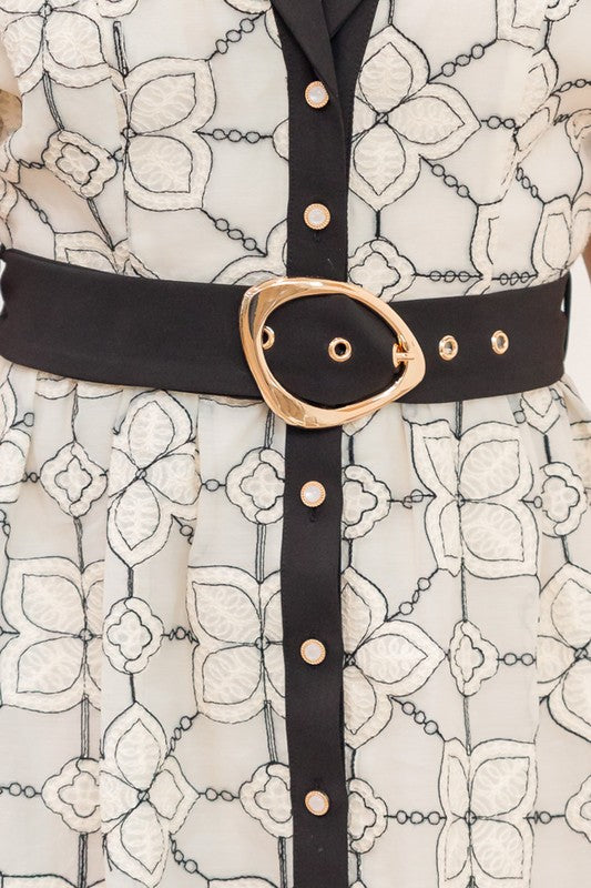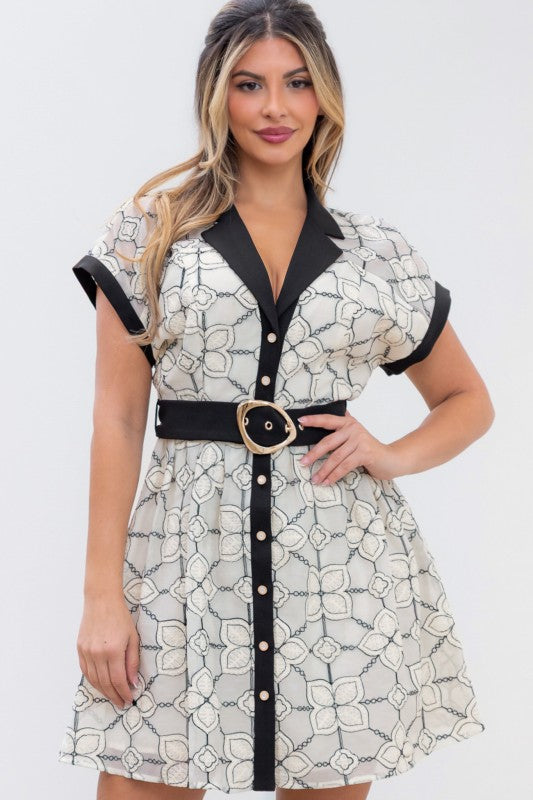 Step into effortless elegance with the Embroidered Floral Fit & Flare Collared Mini Dress — a romantic nod to classic femininity with a modern twist. In a dreamy cream multi palette, this dress combines tailored structure with soft floral embroidery for a look that’s as polished as it is playful.