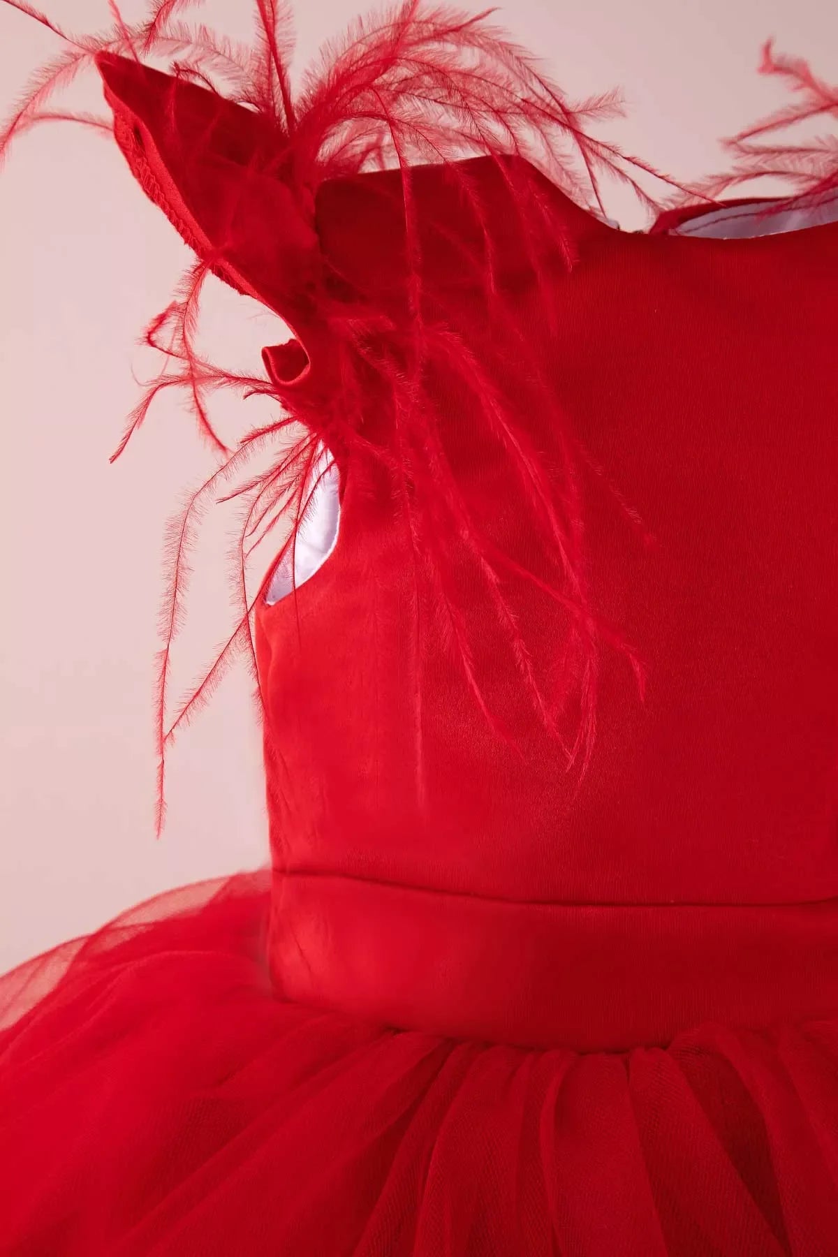 • Cap Sleeves with Feather Details: Delicate feather details on the cap sleeves add a touch of sophistication and whimsy.