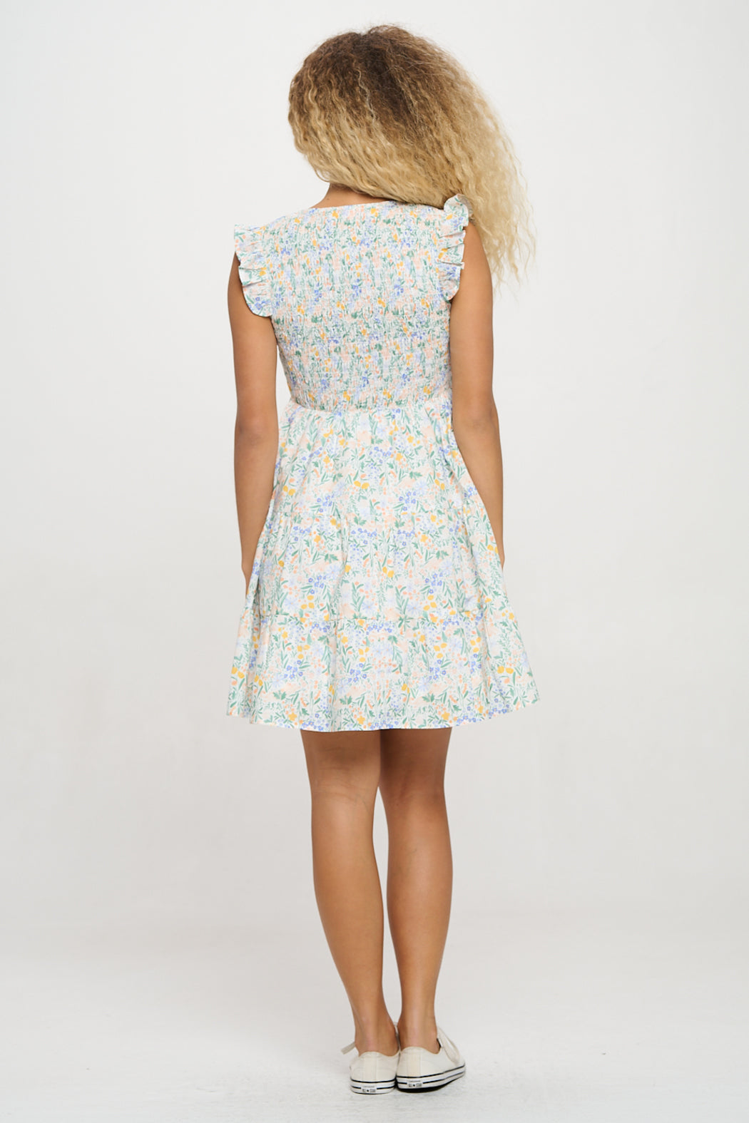 Bring a touch of whimsy to your wardrobe with this charming babydoll dress. Featuring delicate flutter sleeves, a flattering V-neckline, and a vibrant floral print, this dress radiates effortless beauty. Its flowy silhouette and lightweight fabric make it perfect for warm-weather outings and casual occasions.
