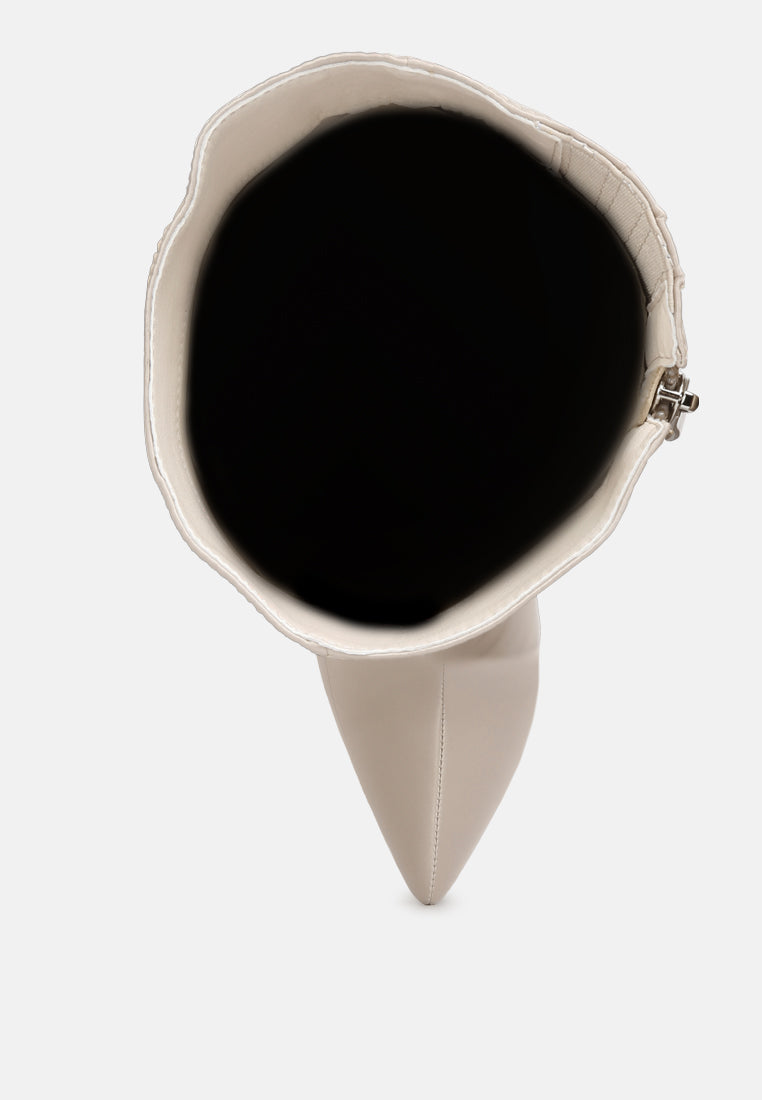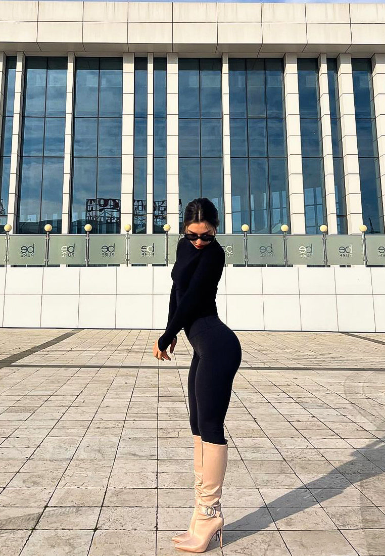 Slip-On high calf boots with pointed toe and buckle closure are a good autumn choice. Keep your feet warm and comfortable.