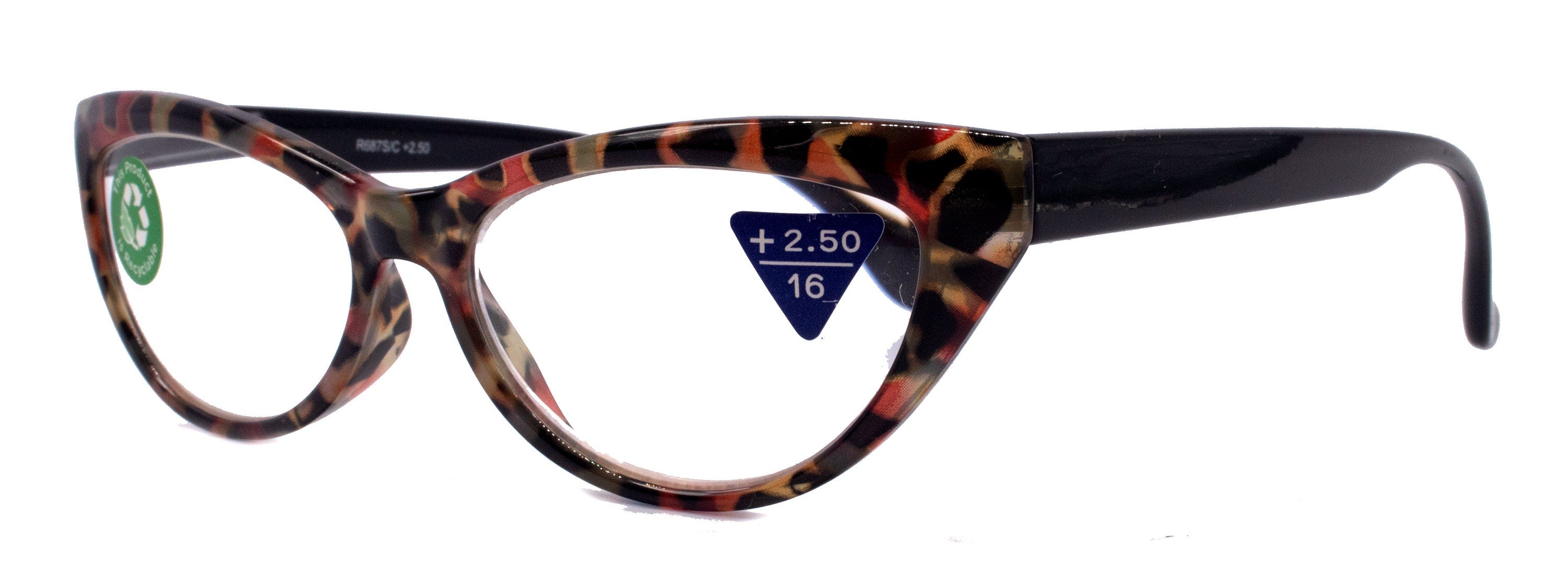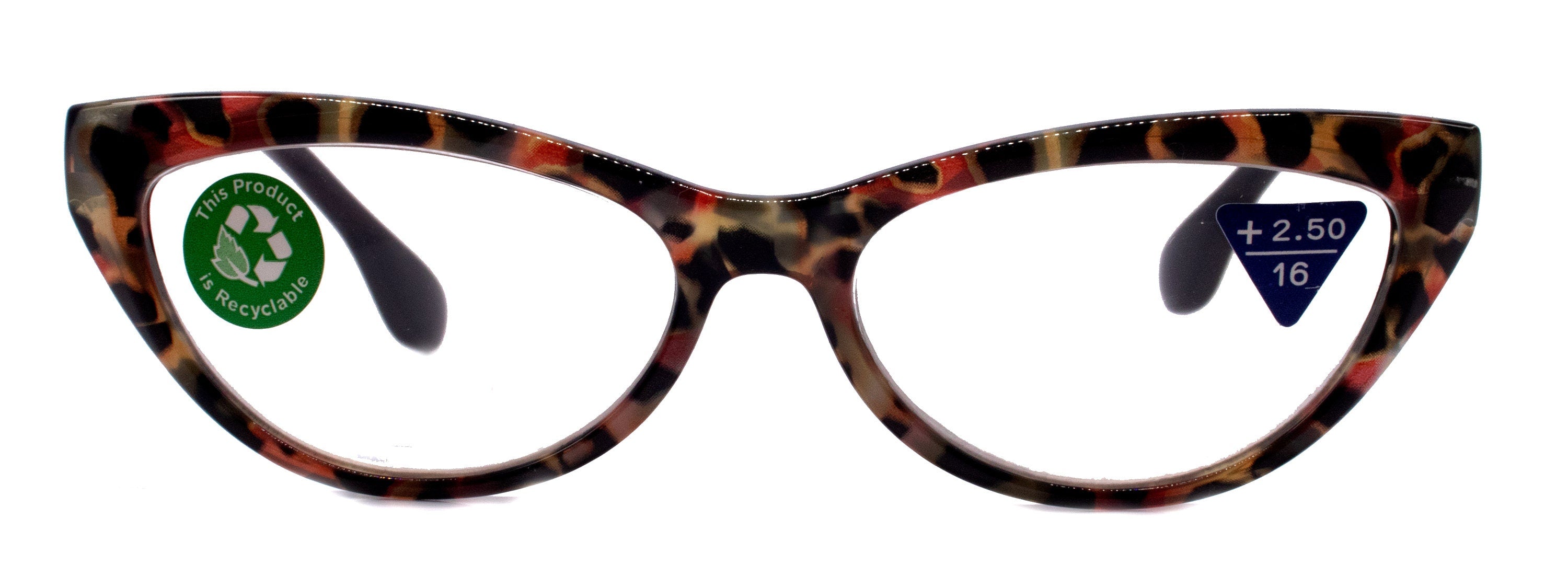 Lynx, (Premium) Reading Glass, High End Readers +1.25..+3 Magnifying, Cat Eye optical Frame, Tortoise Shell (Brown, Red) NY Fifth Avenue.