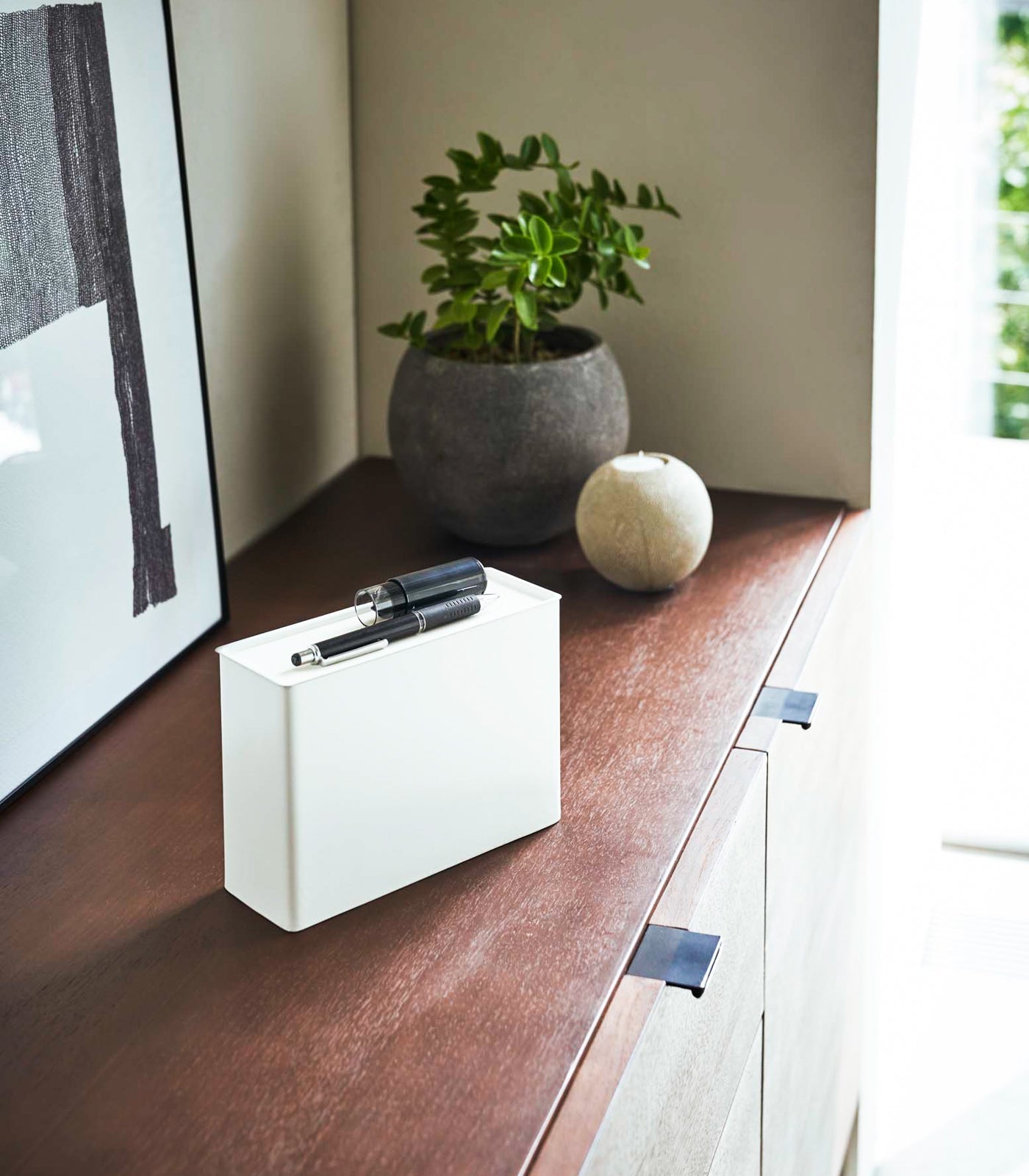 How to mask your masks. This mask dispenser was designed for life in Japan, where face masks have been considered courteous and commonplace for years. Keep your masks sanitary and dust free when not in use. Moreover, it separates clean masks from the ones that need washing. Pulling a fresh mask from the bottom of the dispenser is quick and contactless, so it’s good for sharing. The mask dispenser can be attached to metal surfaces using the provided strong magnet or left freestanding on a table or countertop. Thanks to its versatile design, the dispenser fits perfectly in any environment or household.
