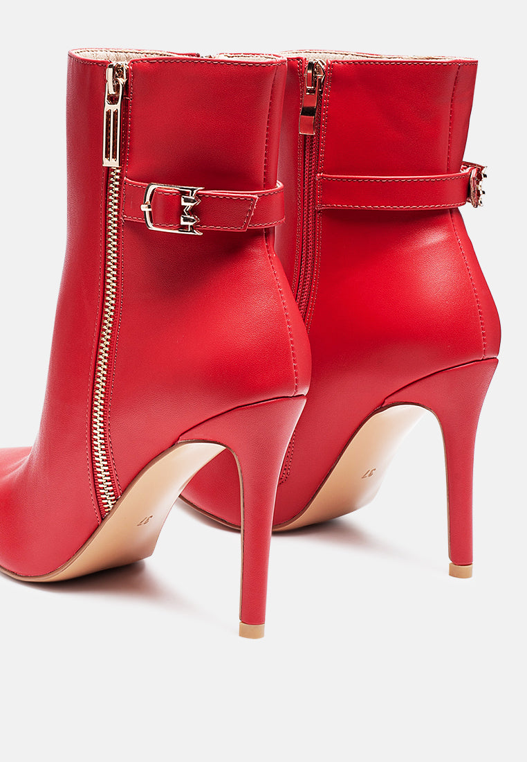 Finding a perfect Shoe for date night? Our Mlient High Heel Stiletto Ankle Boots are just the answer. These heeled boots are embellished with metallic buckle giving you a quintessential diva look. A side zipper opening and lightly padded insole give you ultimate ease. The stiletto heels give you the desired elevation. Pair these women boots with anything and never worry about an outfit mismatch.