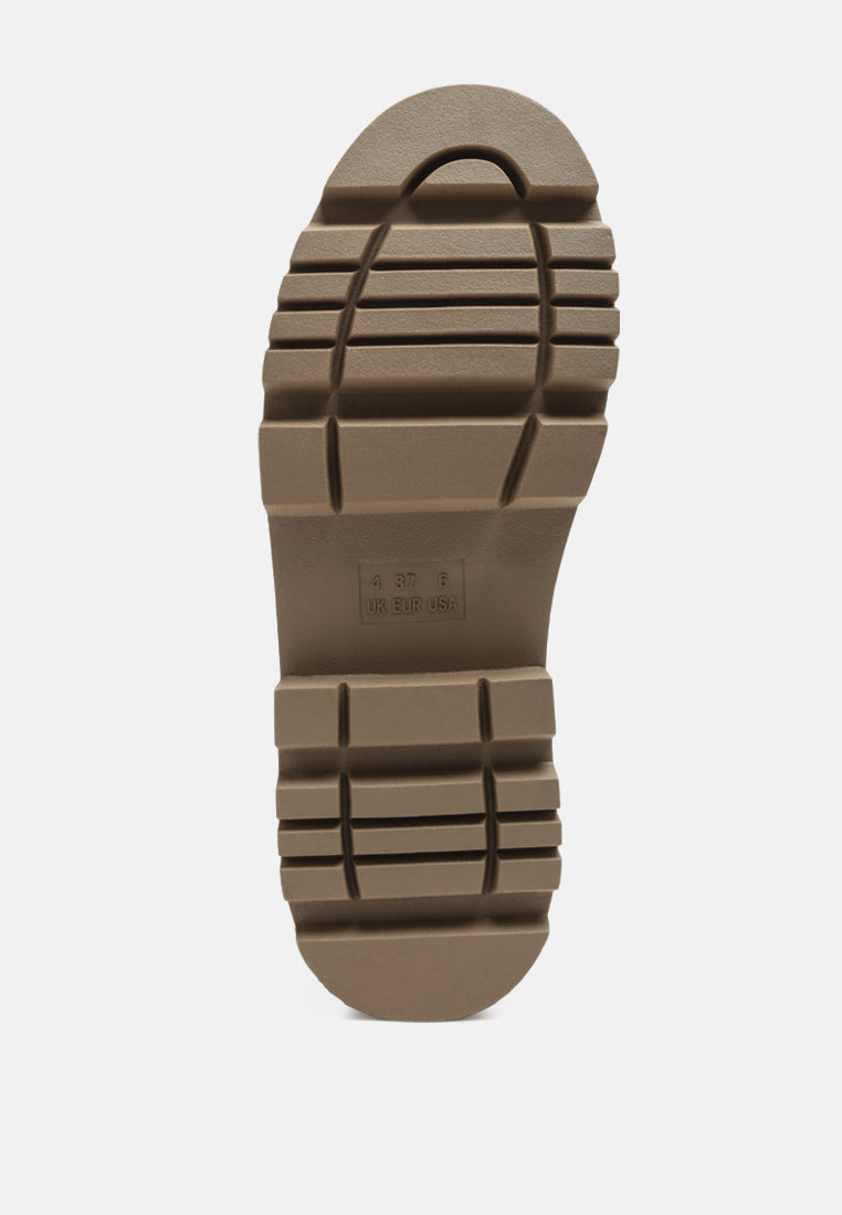 Up for an adventure day out? Our Mood Ankle Boots are ideal for outdoor activities. These combat boots give a rugged look and come with a sturdy lug sole. These women boots are lightly padded, keeping your feet happy. The lace up detail adds to the glam quotient. Pair them up with your cargo or jeans and make a style statement, turning heads around.