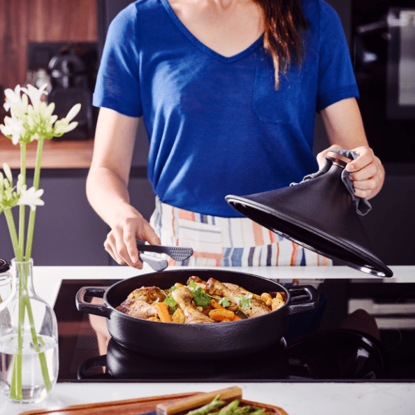 The conical lid creates ideal steam circulation that continuously bastes your food. Unlike ceramic tagines that crack under temperature changes, our cast iron design maintains perfect moisture balance for hours of slow cooking.