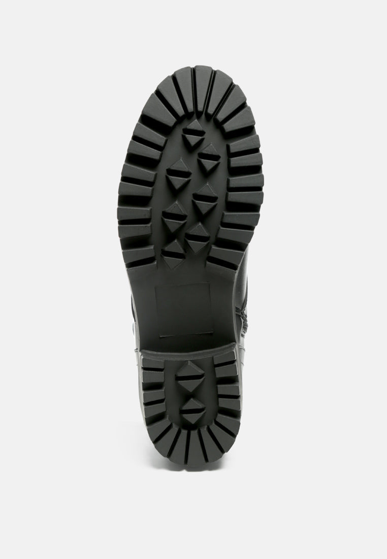 The pair of biker boots in lace-up style with easy to wear side zipper opening and metal buckle details is worth every penny spent.