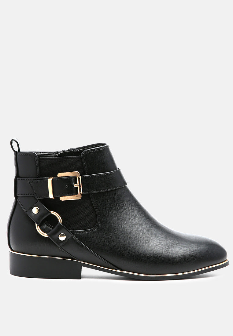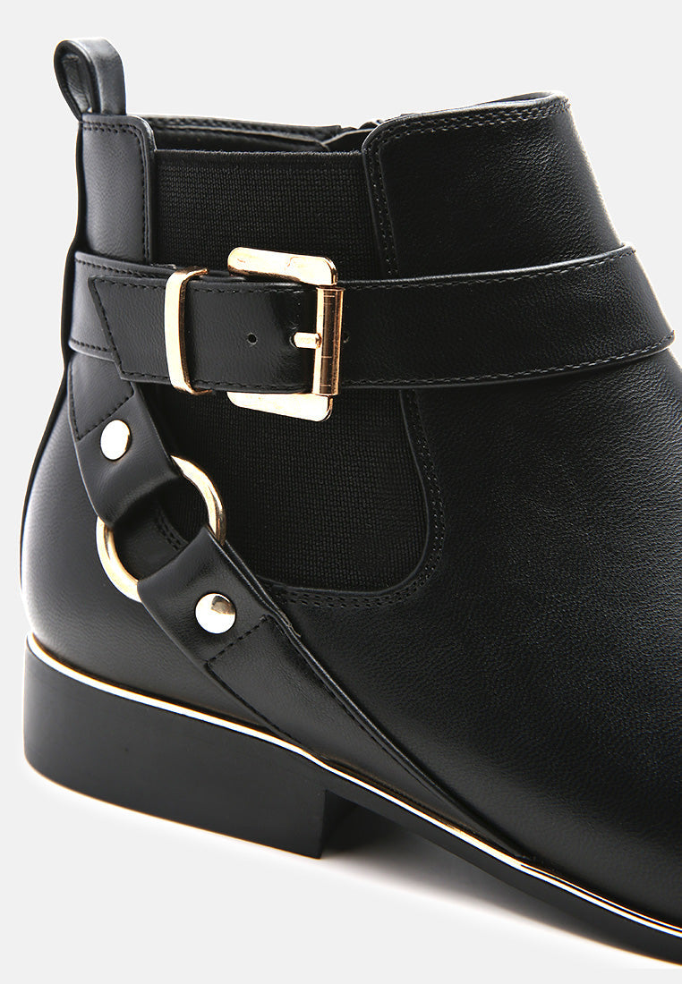 Sleek boot with golden metallic piping running throughout this piece is elegant, stylish, and suave for when it starts getting chilly, a must-have.