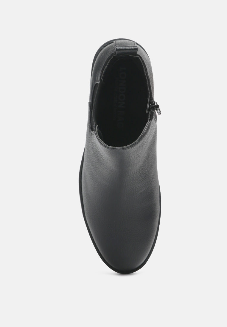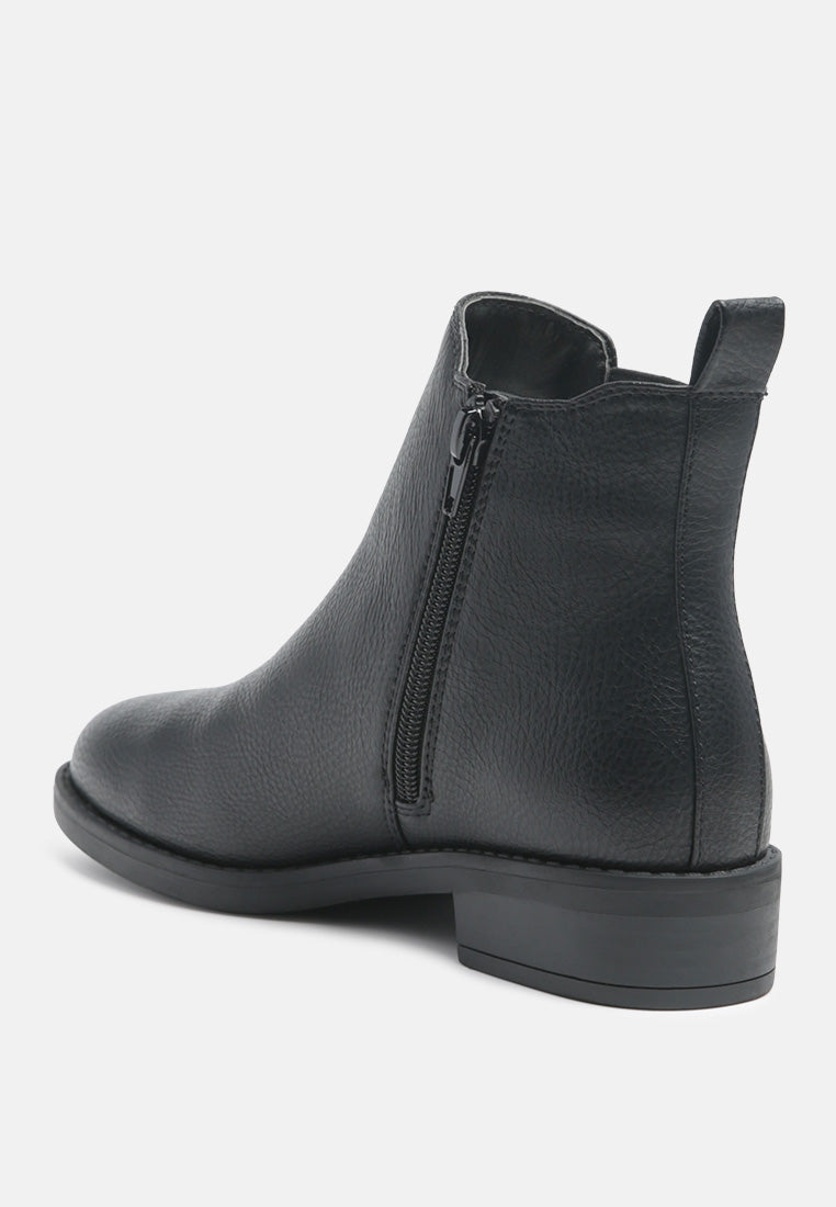 Chelsea-styled boot with side zipper is a minimalist piece for one who would like to keep it simple yet stylish. The elegant construction is smooth PU and the breathable lining is worth buy this season.