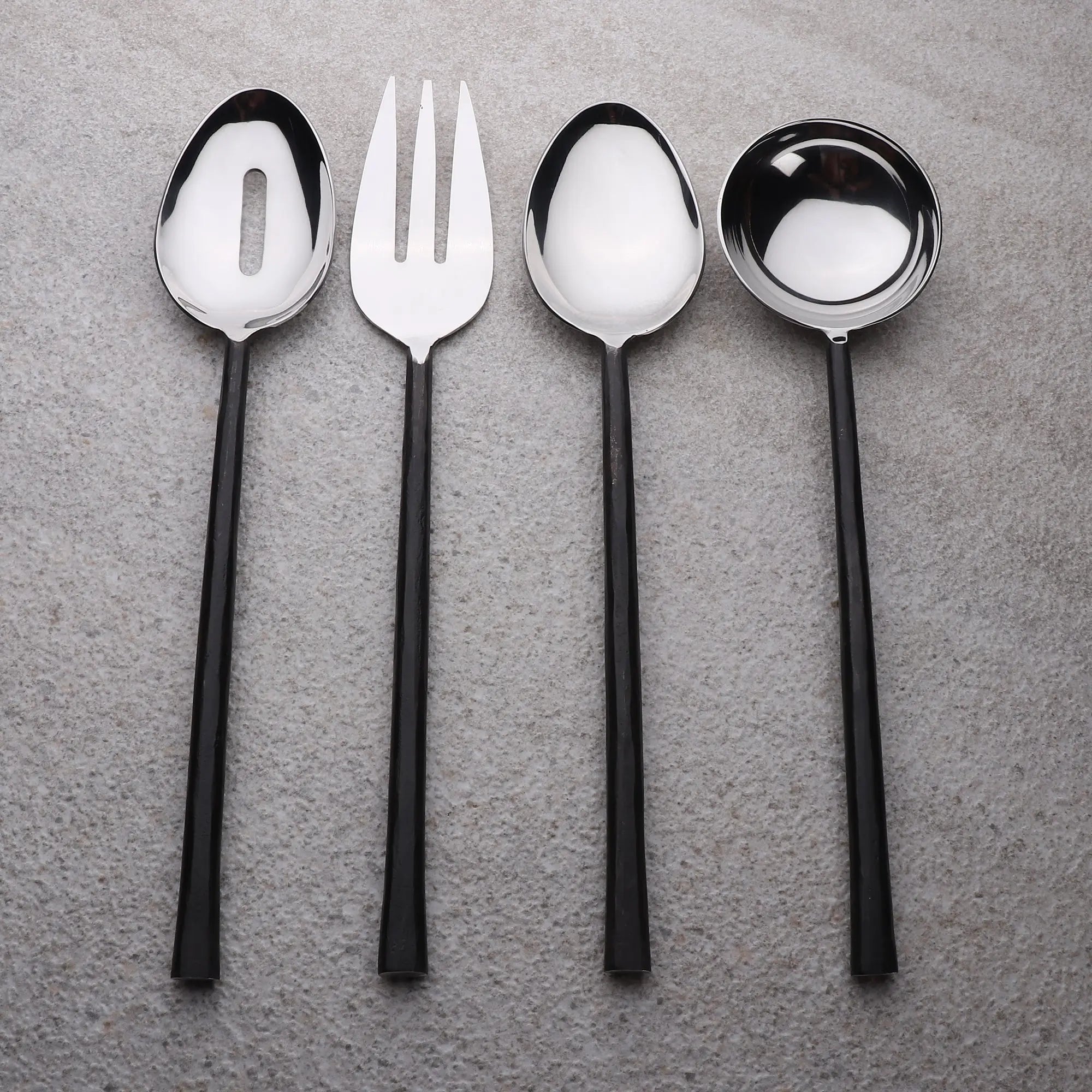 The Sundance 4-piece hostess serving set includes four artisan-crafted pieces, ideal for serving dishes at your next dinner party or family gathering. Combining the durability of quality stainless steel with artisan style, the Sundance Hostess set complements the Sundance black flatware set.