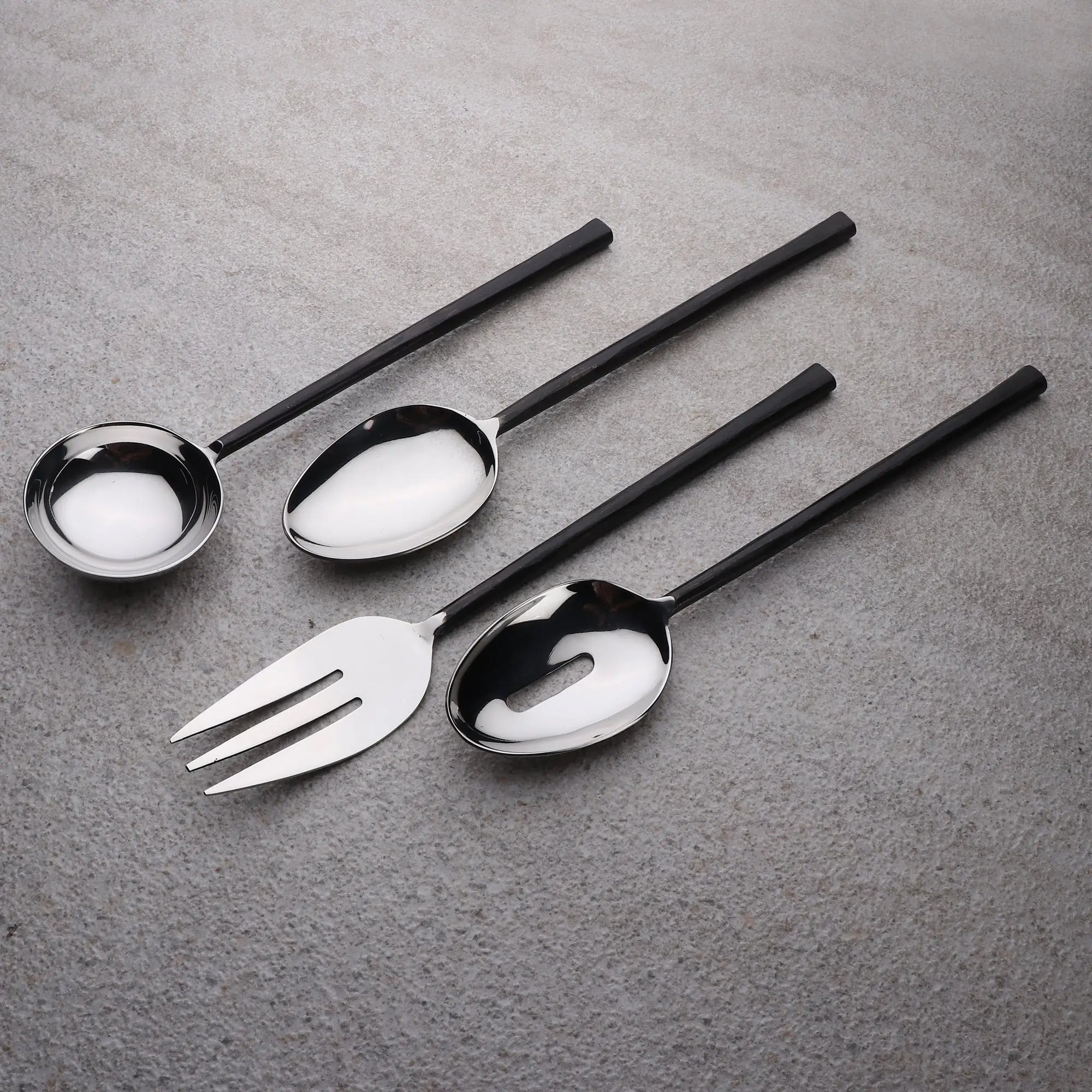 • Each set includes: 1 three-pronged fork, 1 slotted spoon, 1 serving spoon, and 1 sauce/soup ladle