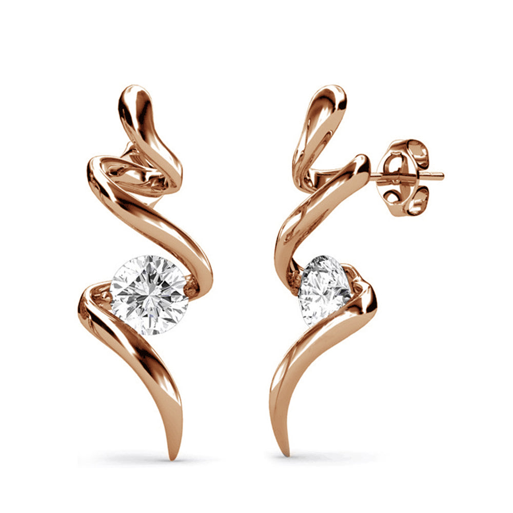 Swarovsky Crystal Spiral Earrings in 18K Rose Gold
