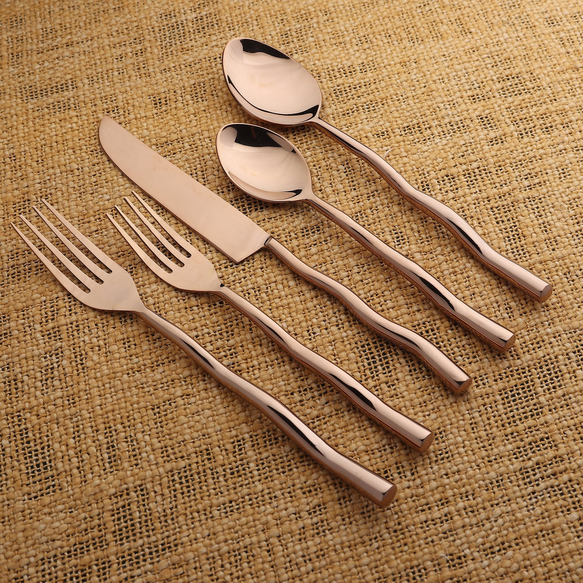 • 5-piece set includes: 1 salad fork, 1 dinner fork, 1 knife, 1 soup spoon, and 1 teaspoon