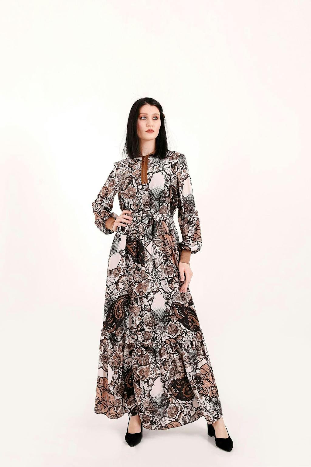 Elevate your wardrobe with our exquisite Paisley Maxi Dress, designed to turn heads and make a statement at any event. The intricate paisley pattern will transport you to a world of elegance and charm, while the long sleeves provide warmth and sophistication. Embrace timeless style in this versatile dress that is sure to become a staple in your collection. Shop now and experience the ultimate blend of comfort and glamour.
