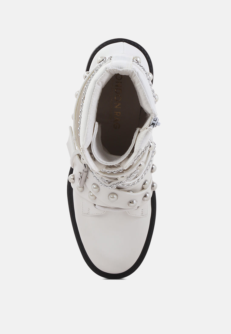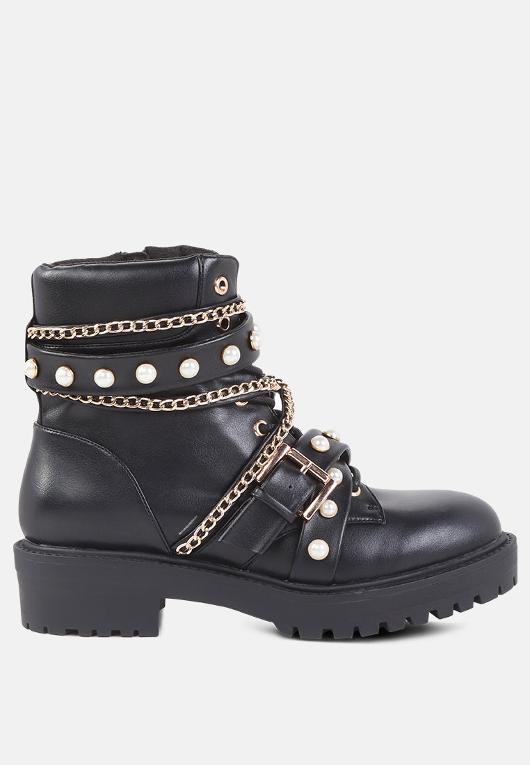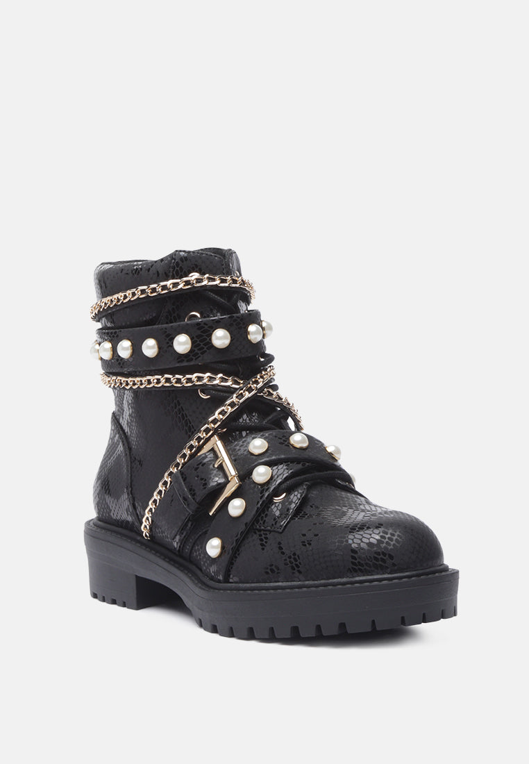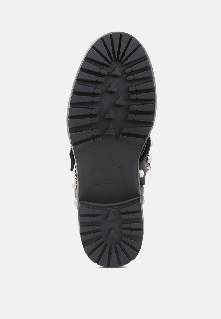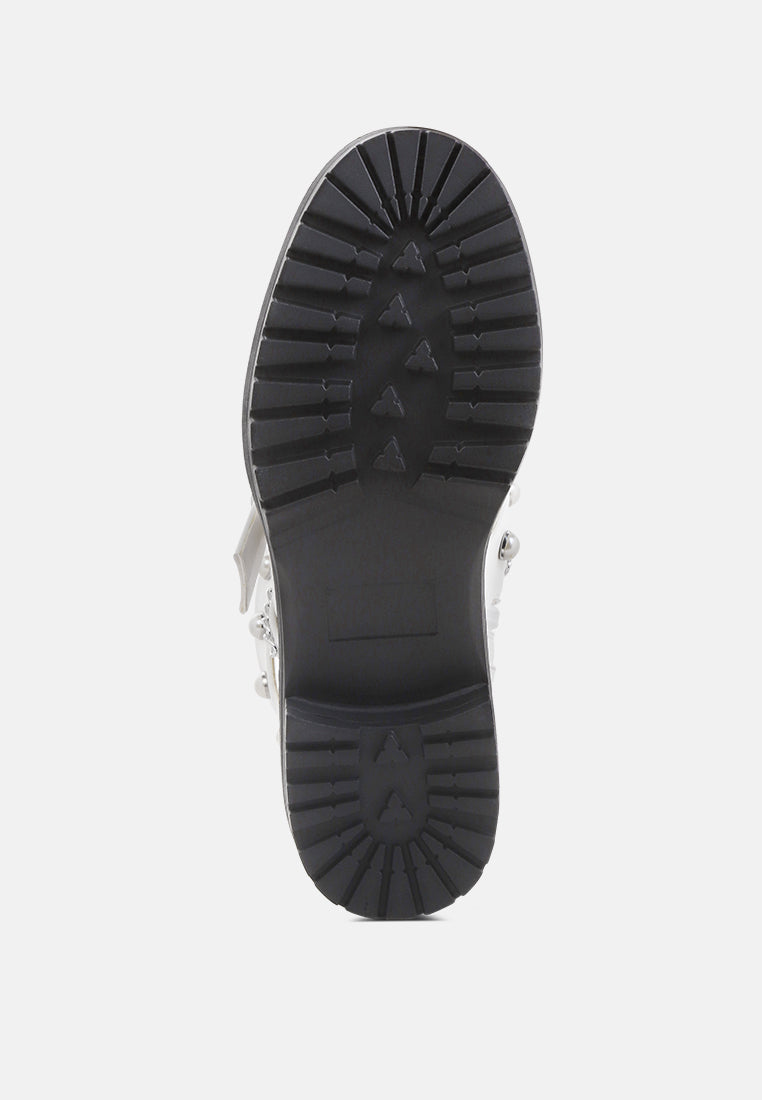Give your look a final touch with this elegant boot. Styled with studs and chains these chunky sole boots are a great collection for your wardrobe. Its material has a premium finish that will rock your look wherever.