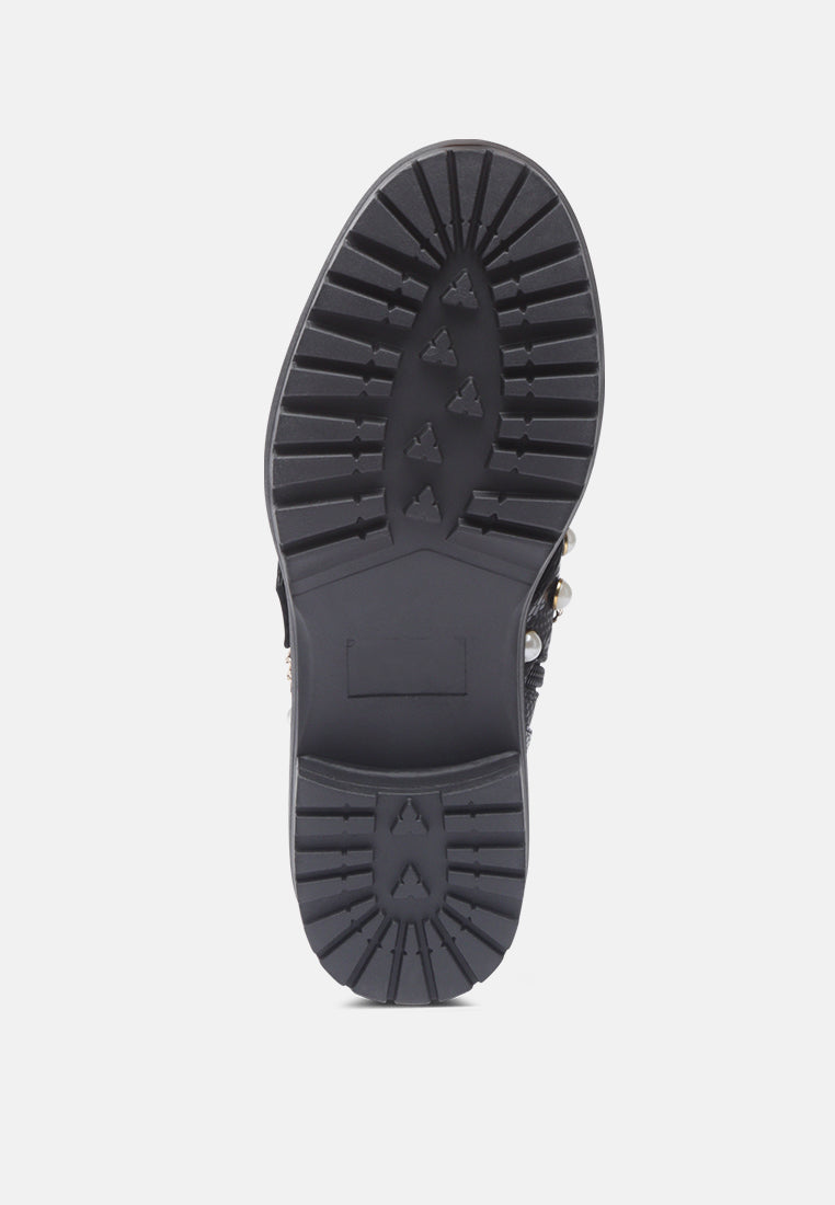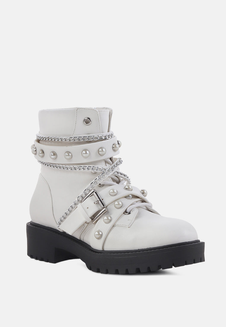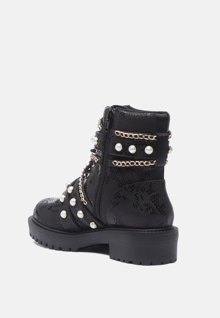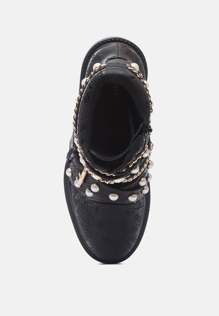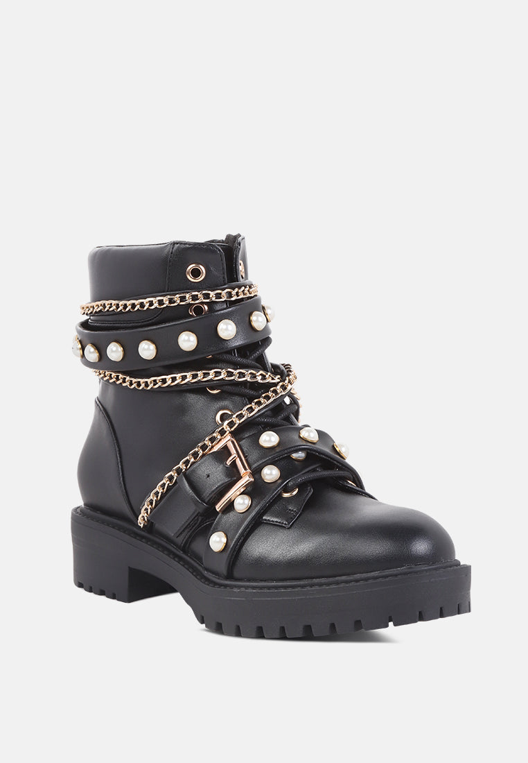 Give your look a final touch with this elegant boot. Styled with studs and chains these chunky sole boots are a great collection for your wardrobe. Its material has a premium finish that will rock your look wherever.