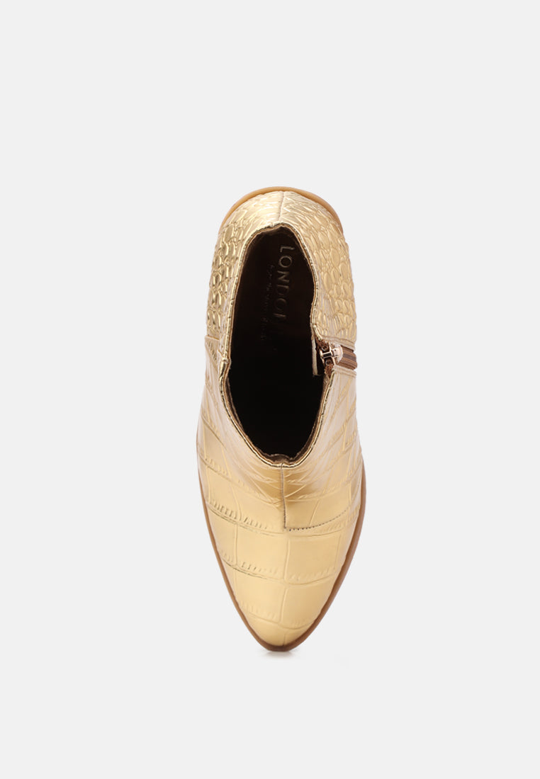 Tuck your distressed jeans into these ankle boots & style it with a printed Top.