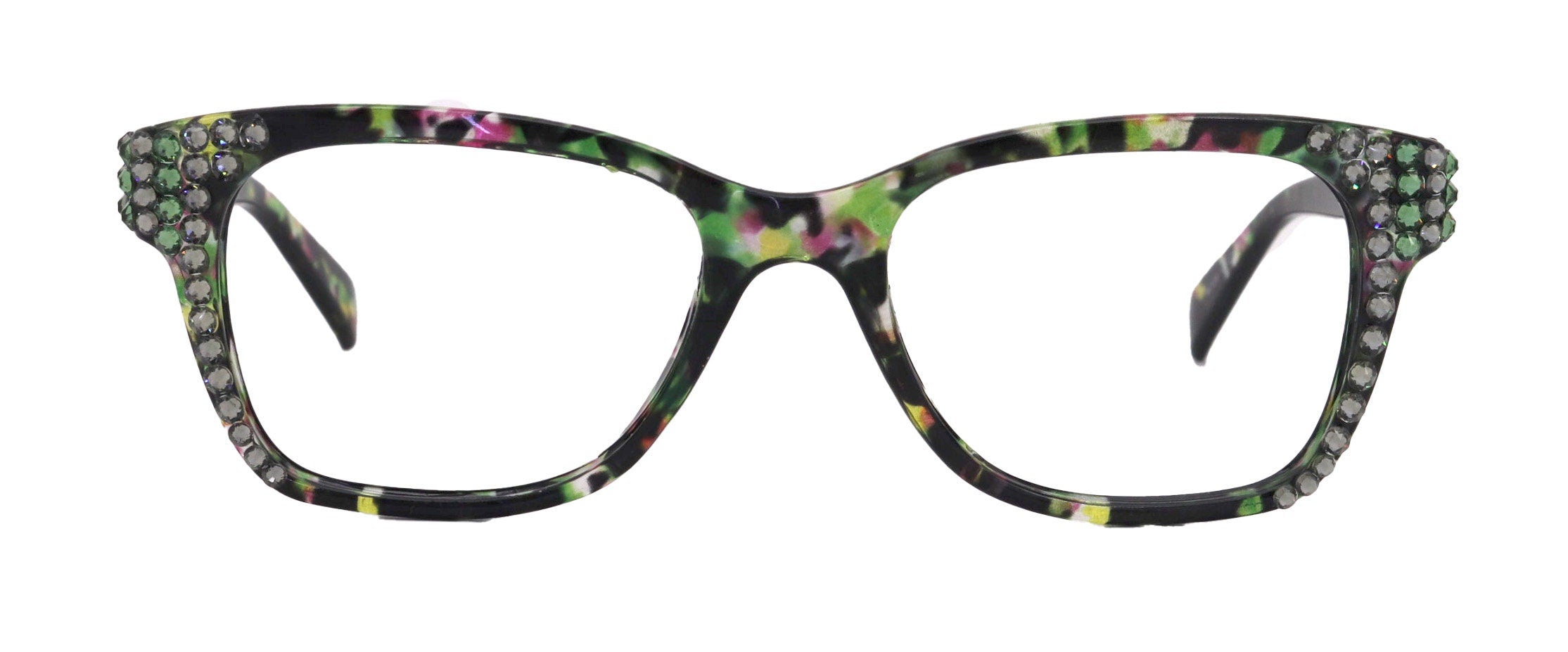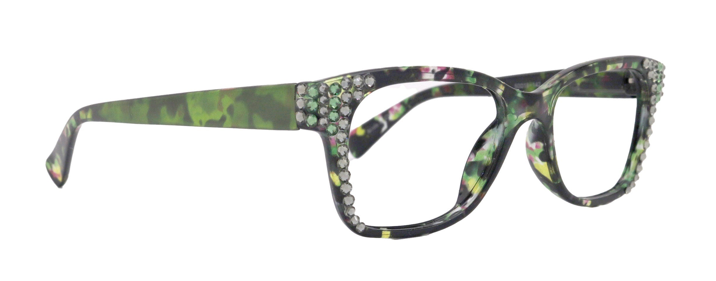 Azul, (Bling) Reading Glasses 4 Women W (Black Diamond N Green)Genuine European Crystals. +1.5..+5 NY Fifth Avenue (Wide frame)