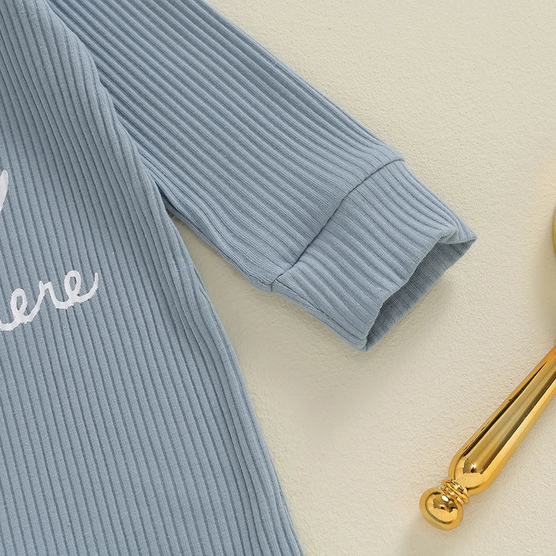 Baby Boys Girls 2Pcs Hi I'm New Here Romper Letter Print Long Sleeve Crew Neck Jumpsuit Bodysuit with Hat Set