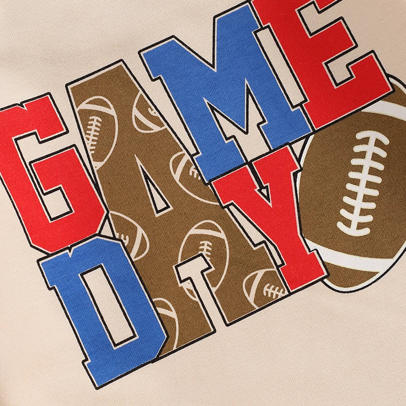 Baby Girl Boy Fall GAME DAY Bubble Romper Football Letter Print Long Sleeve Round Neck Jumpsuit