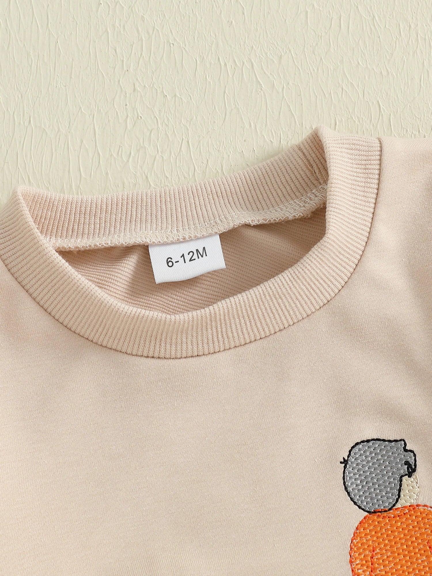 Baby Toddler Boys 2Pcs Autumn Long Sleeve Football Embroidery Top Drawstring Jogger Pants Set