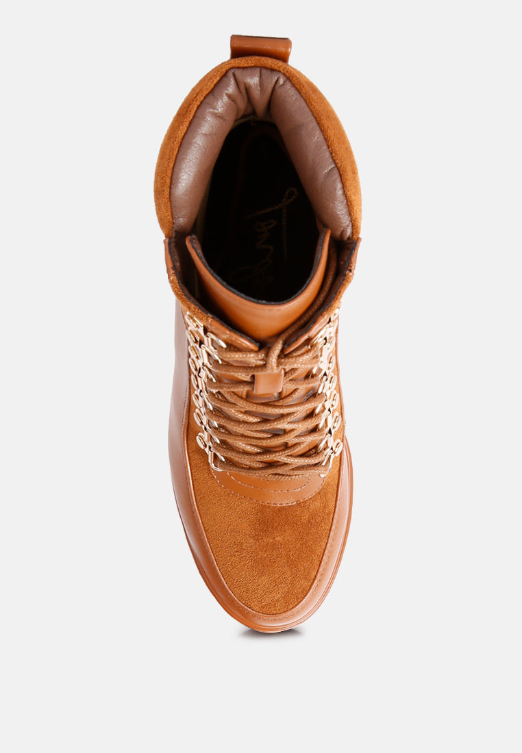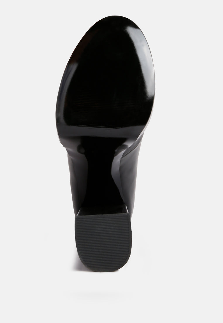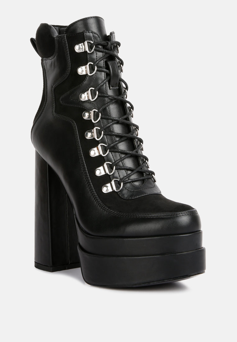 High Block Heeled suave Biker Boot in faux leather and microfiber panel is all edgy and chic! Comes with metallic eyelets which line up the top. The high chunky platform is height booster, reducing pressure on toes.