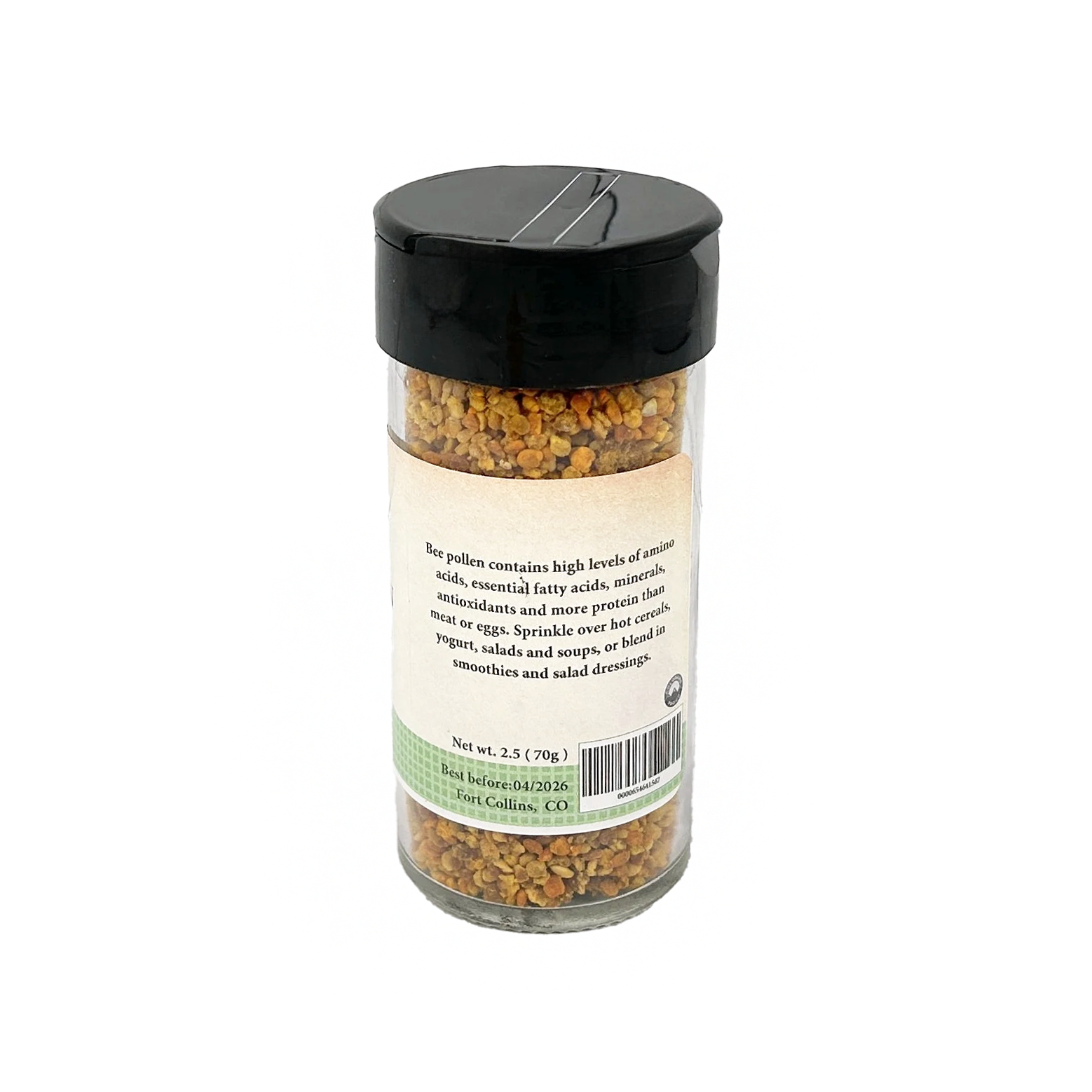 Use the crunchy, slightly sweet pollen nuggets as a topping for hot cereal, mix it into yogurt, blend into smoothies, or sprinkle on baked good before they go into the oven. Bee pollen is high in amino acids, essential fatty acids, minerals, antioxidants and has more protein per ounce than meat or eggs.