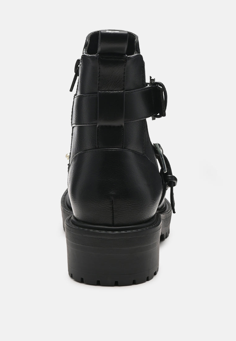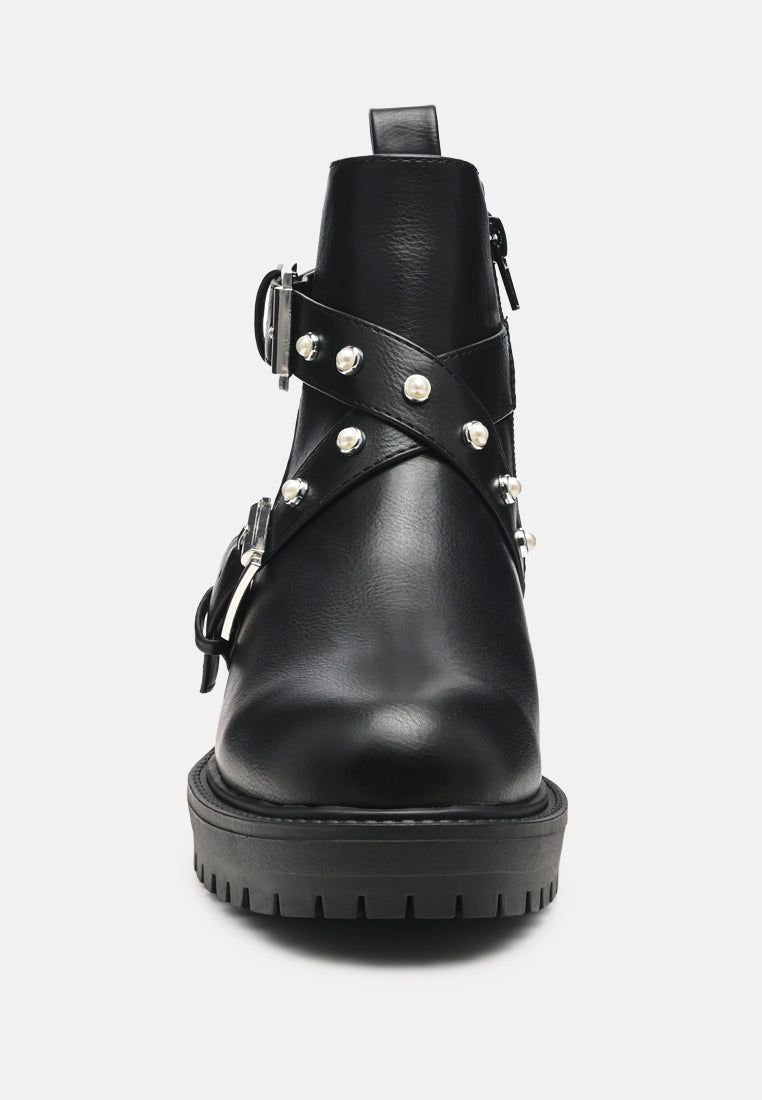 Absolutely kicking - for all your plans. Studded ankle boot comes inside zipper opening which makes it easy to wear.