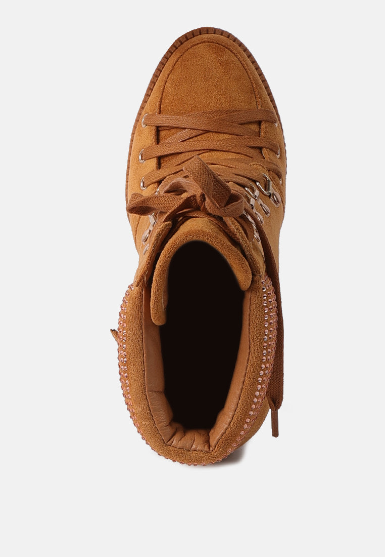 Birch Block Heeled Ankle Boots are rhinestone boots with cushion collar. These high heeled boots come with a back buckle, a sturdy lug sole, and metal eyelet detailing. You can't go wrong with this pair of ankle boots for any of your outfits. The lace up closure adds esthetic to the shoe. These girls boots for sure will make heads turn to make you the quintessential diva you are.