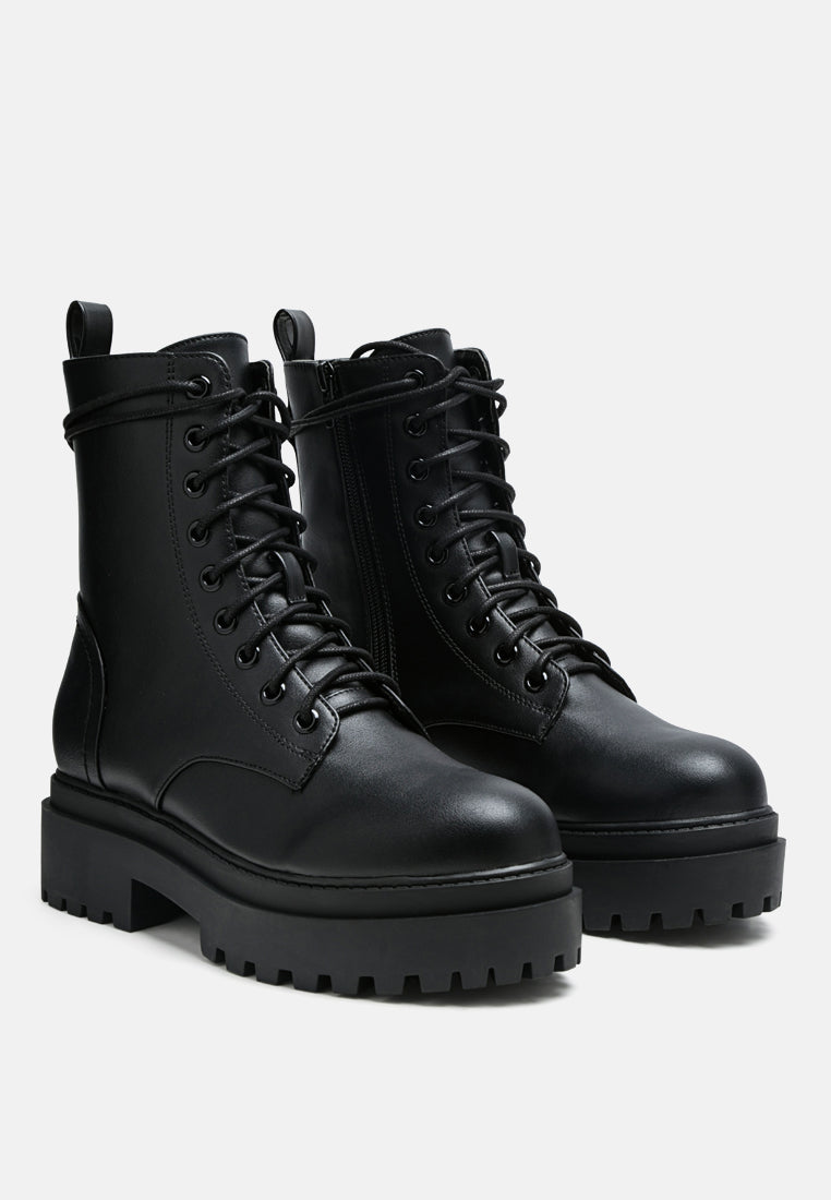 Combat Biker Boot which is utility + style. Comes with side zipper opening which makes it esasy to wear. The lace-up detail boot has sturdy lug sole which will run long.