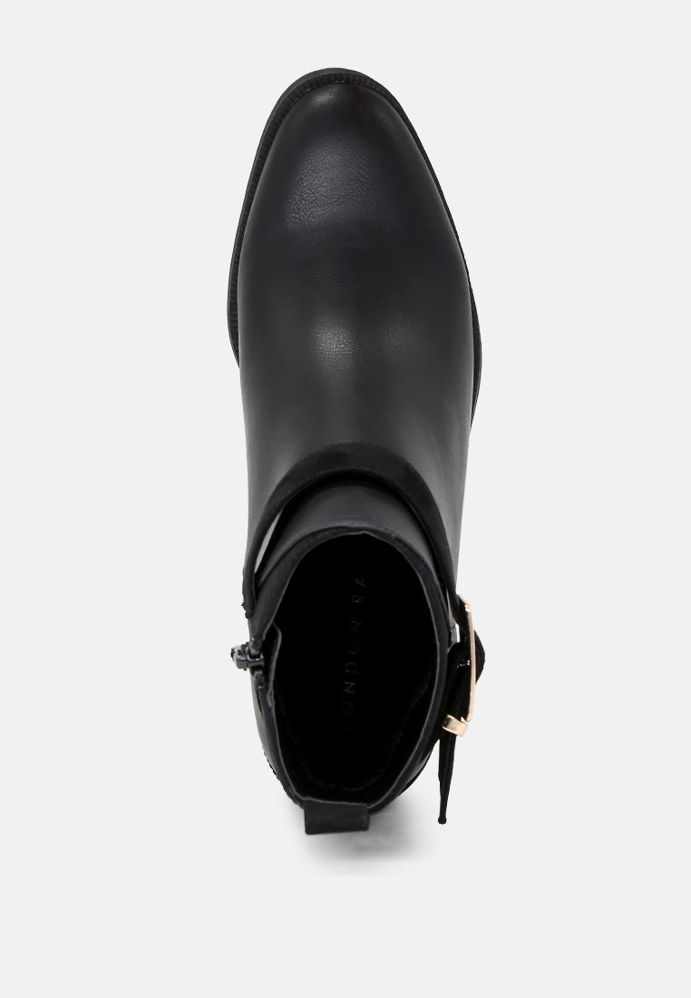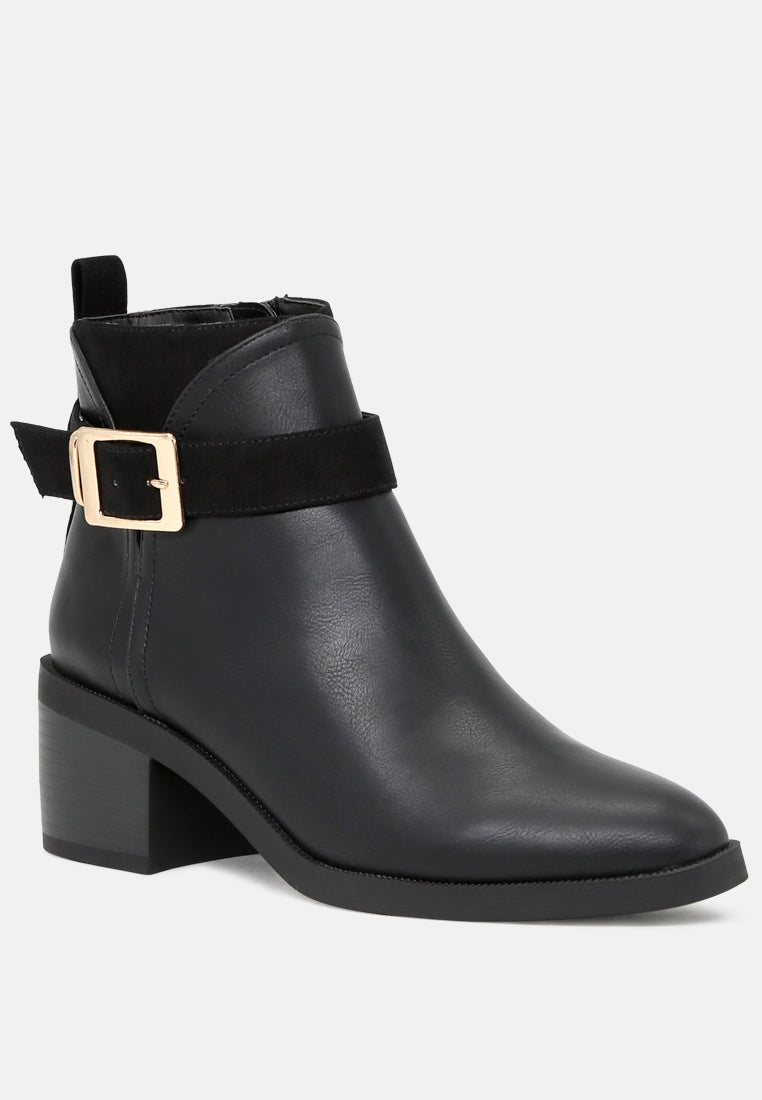 These trendy block-heeled boots with adjustable buckle offer comfort without compromising on style.