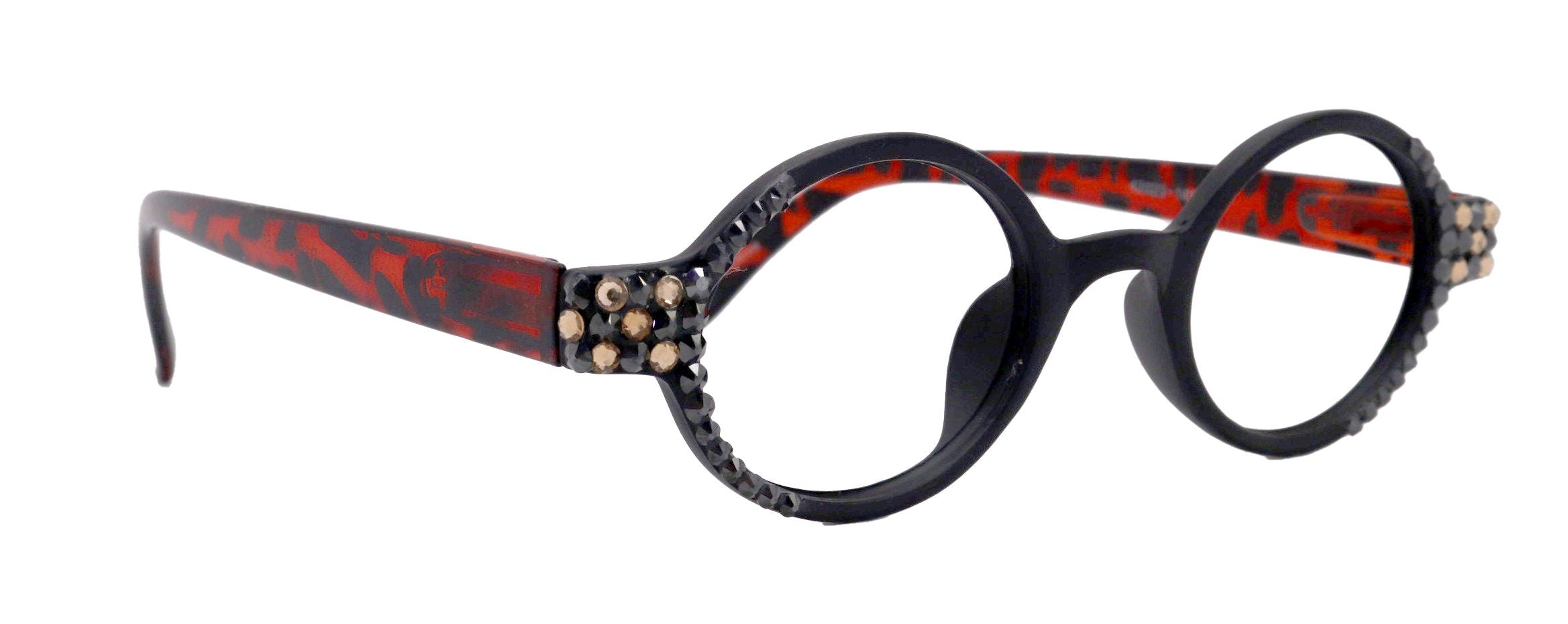 Bling Women Reading Glasses Hematite W light Colorado Genuine European Crystals, Round (Black) Tortoiseshell. NY Fifth Avenue