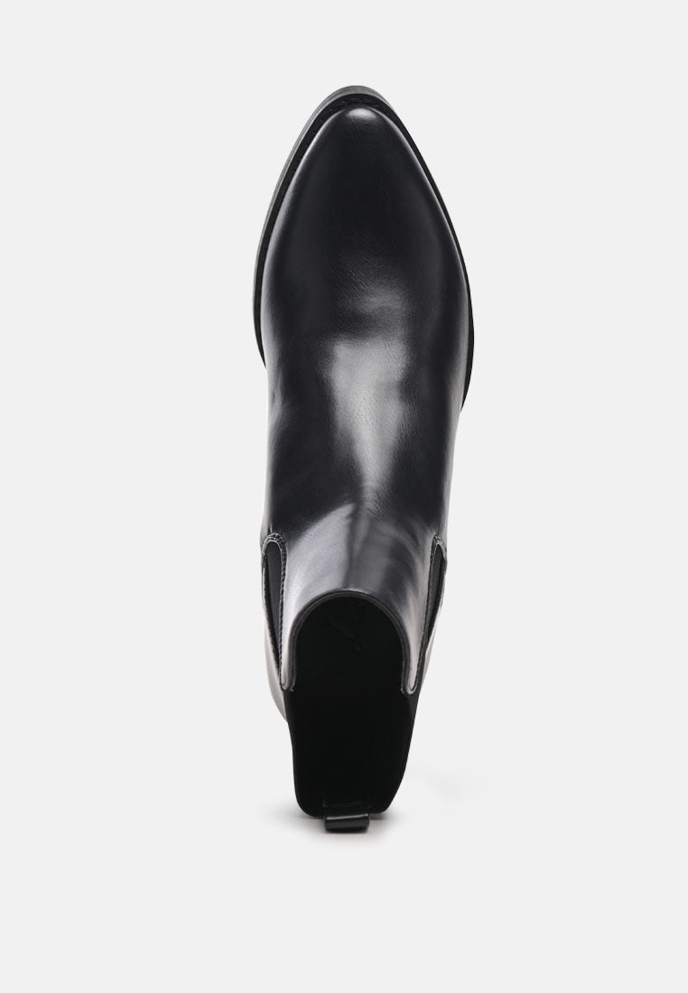 Block Heeled slip on Chelsea Boot which is easy to wear, elegant and comfortable. The almond toe boot has elasticated ankle band which grips well.