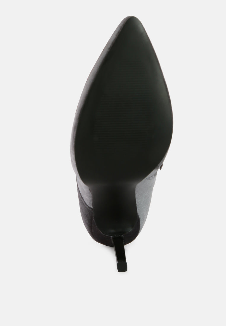 Stiletto High Heeled Velvet Boot comes with side zipper opening. The high heeled stiletto sandal in velevet is chic and luxurious.