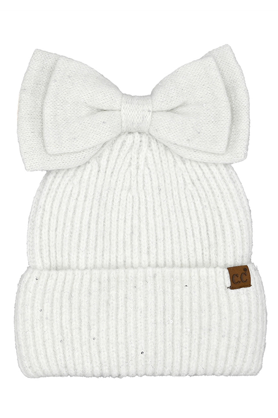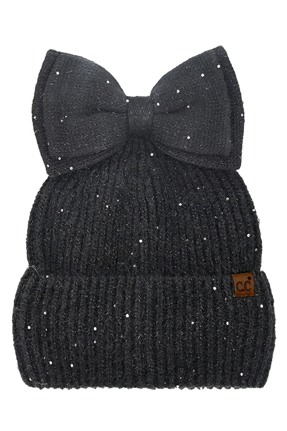 • C.C Messy Bun Bow Beanie with Sequins Winter Hat