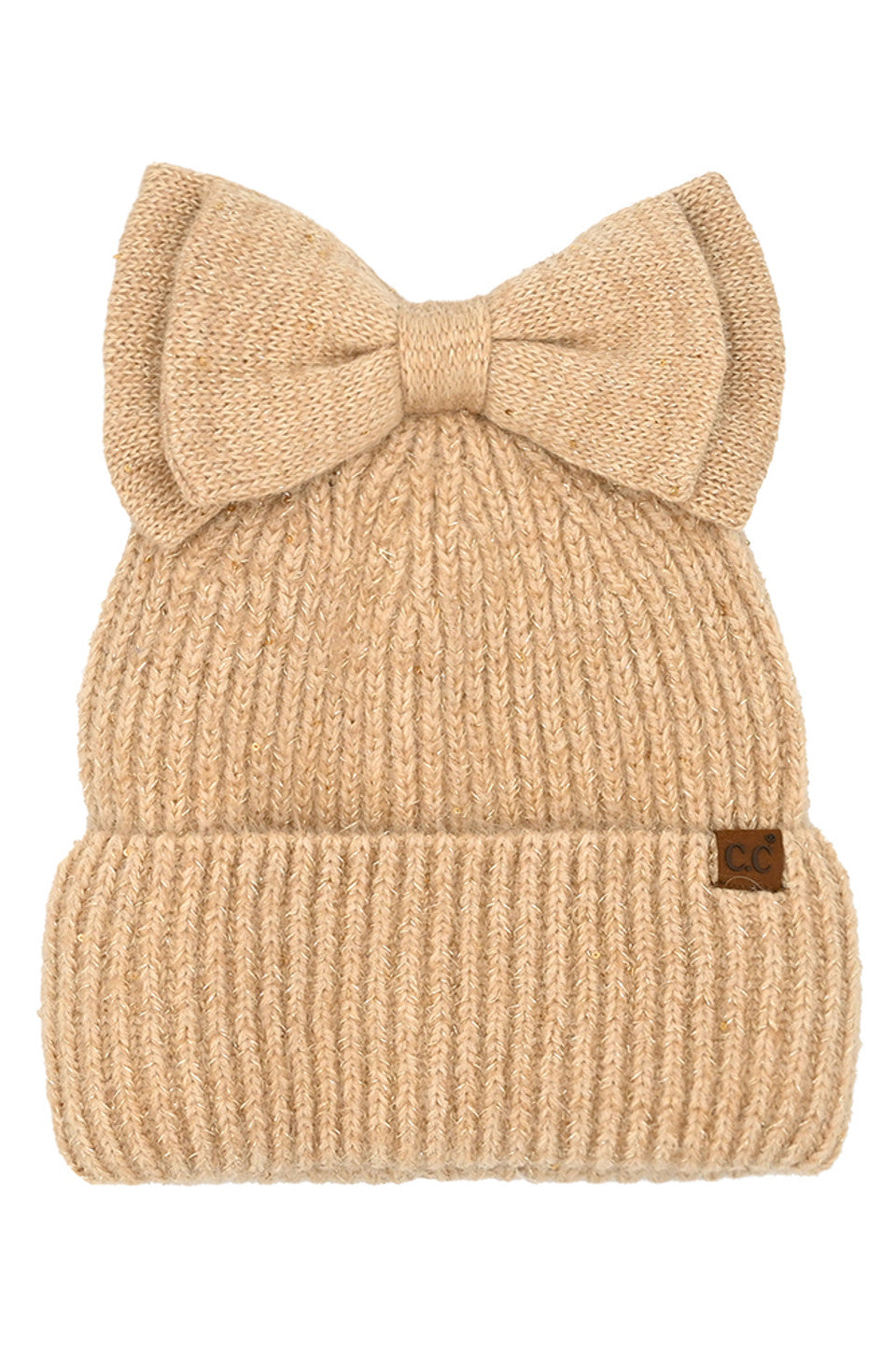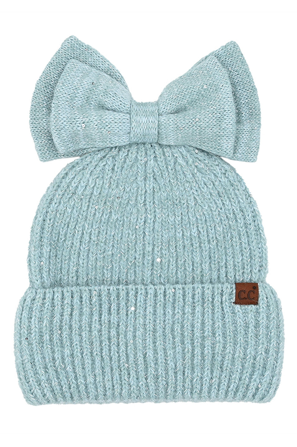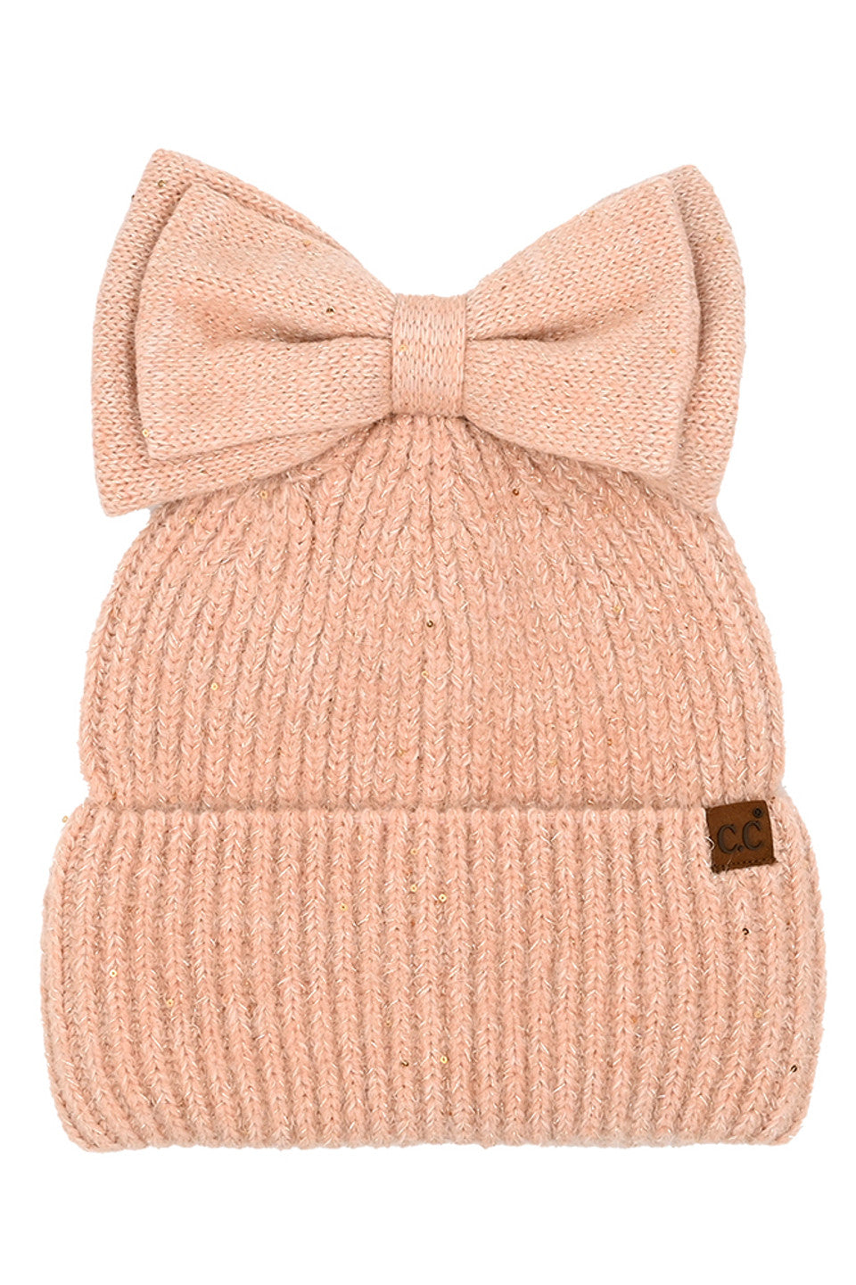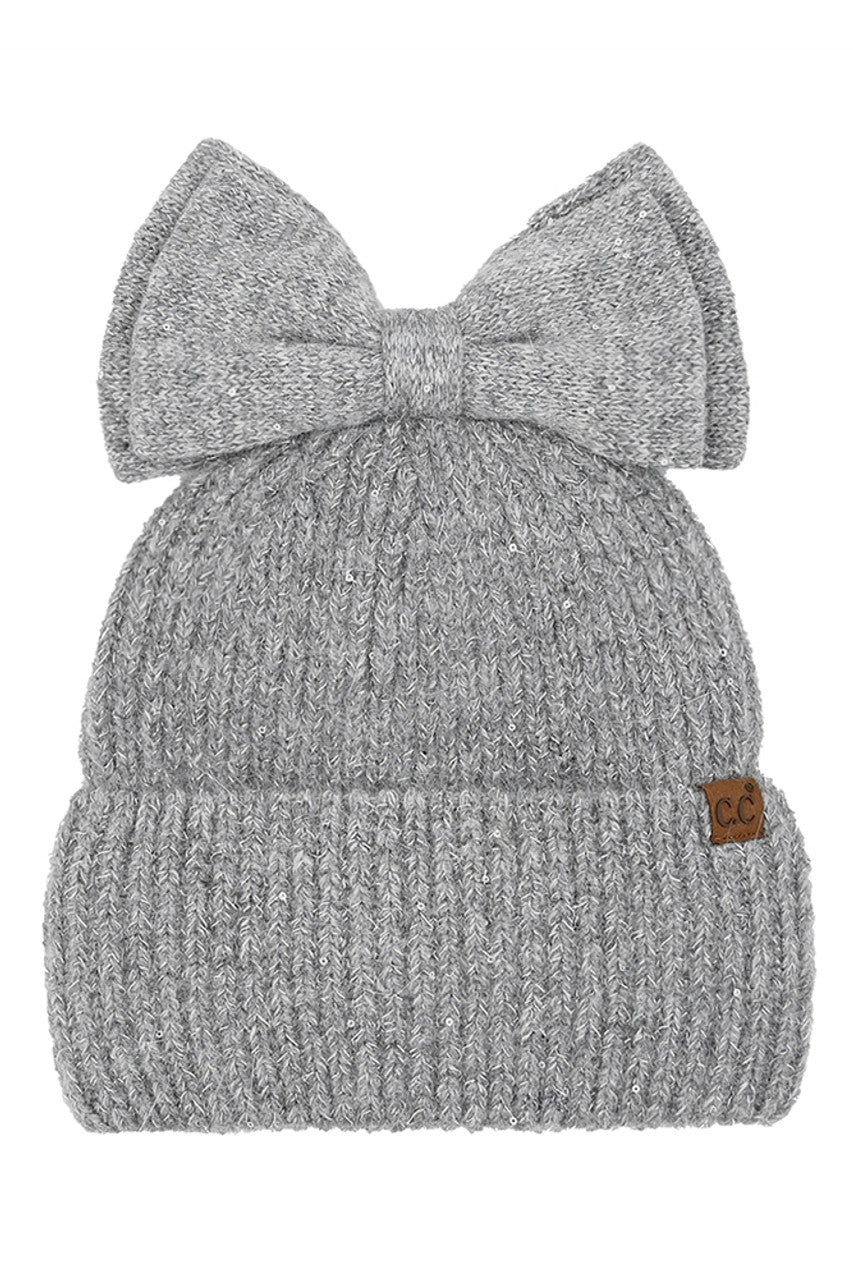 C.C Messy Bun Bow Beanie with Sequins Winter Hat