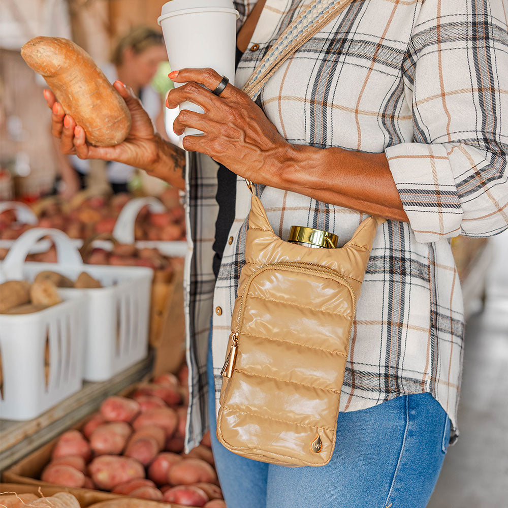 • Quality Material — Adjustable 2 inch wide strap distributes bottle weight; Lightweight, soft, & durable material; Stylish quilted fabric & trendy strap make this a must-have accessory & fabulous gift