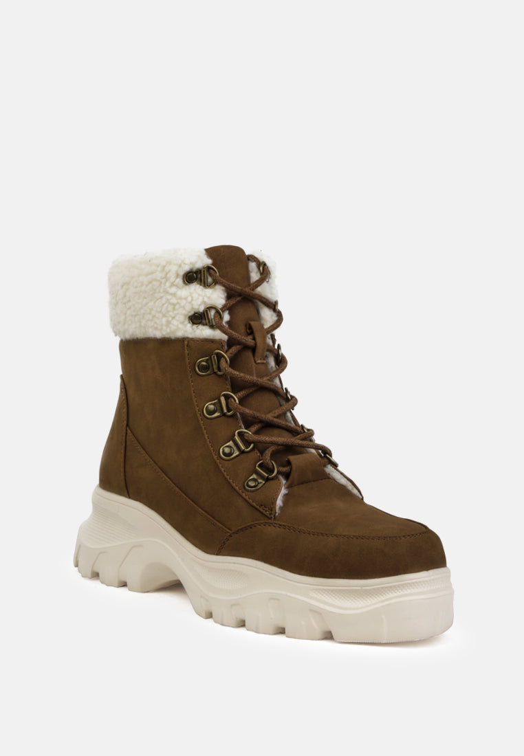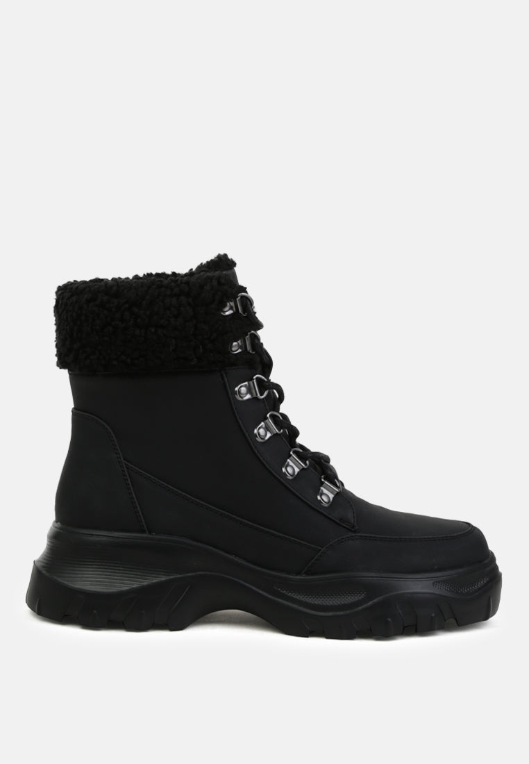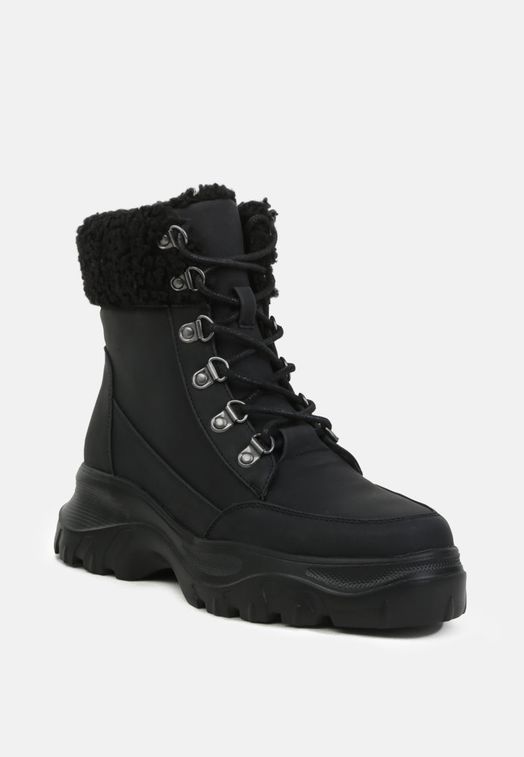This lace-up combat boot is every girl's desire the wool collar adds the wow element to the boot while the lace-up fastening provides a comfortable grip.
