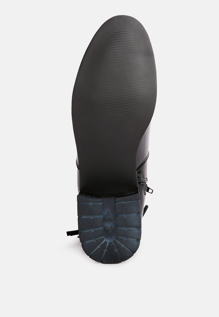 A staple in the wardrobe, these short-heeled boots are perfect for casual wear. The boots for women are versatile and the clear heel detail is an intriguing element. Their versatility makes them a go-to with almost all outfits, and the cushioned insole offers comfort.