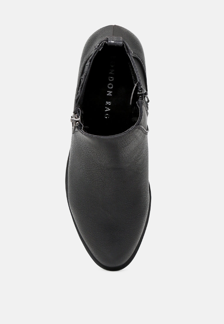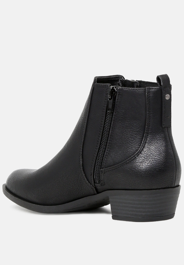 Low Heel Chelsea boots with elasticated gusset and zipper opening is easy and stylish on feet. The pointed toe ankle booties is a nice transition style for early winters.