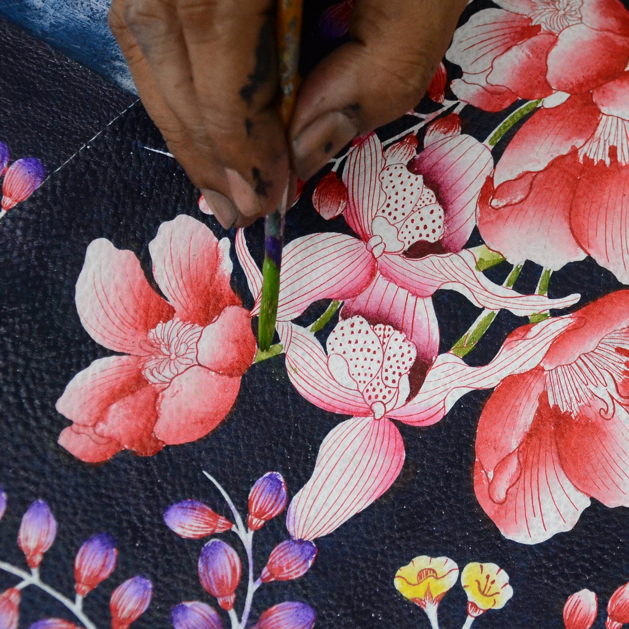 Soft hand-painted leather brings our signature charm to this wristlet designed with a roomy interior perfect.