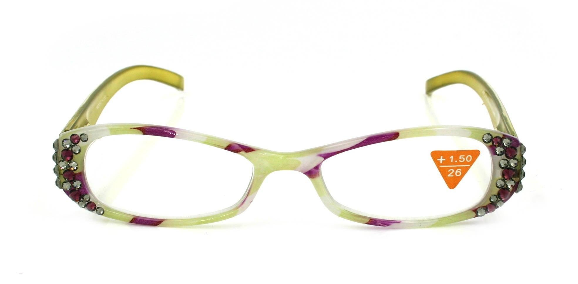 Dashing Stripes, (Bling) Women Reading Glasses W (Amethyst, Black Diamond) (Lime Green, purple) Oval. NY Fifth Avenue