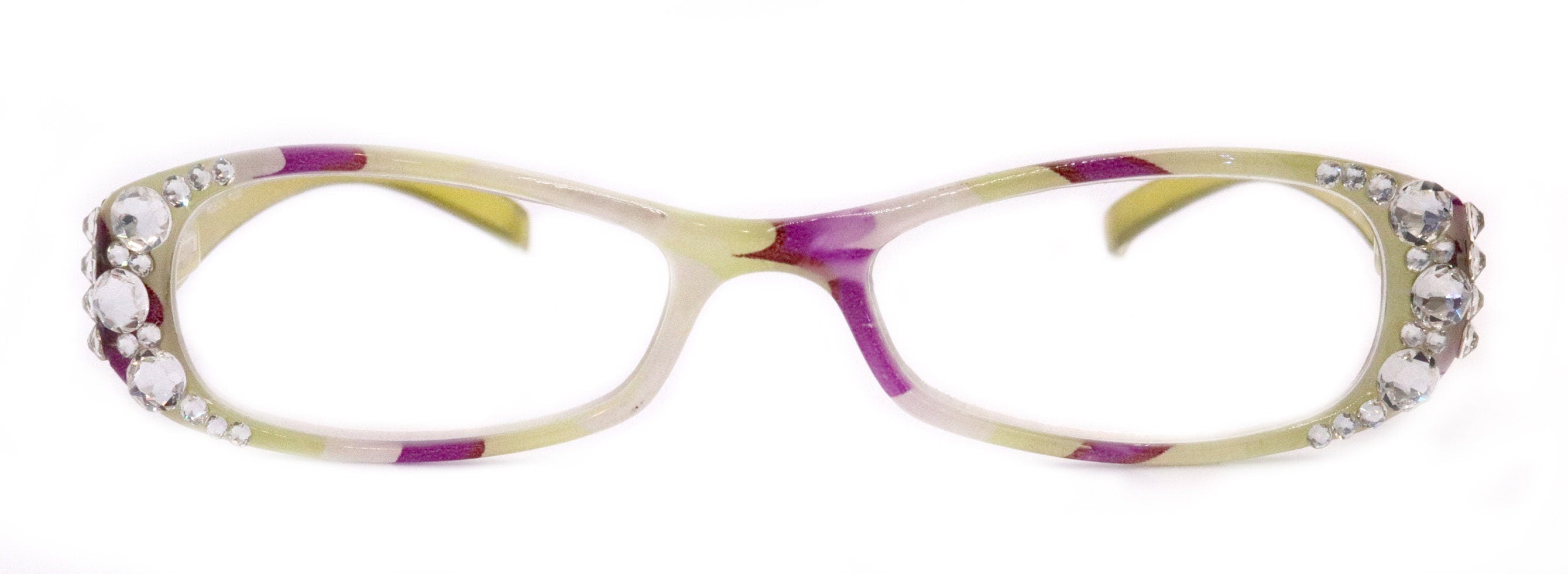Dashing Stripes, (Bling) Women Reading Glasses W (Lime Green, purple) Oval. NY Fifth Avenue
