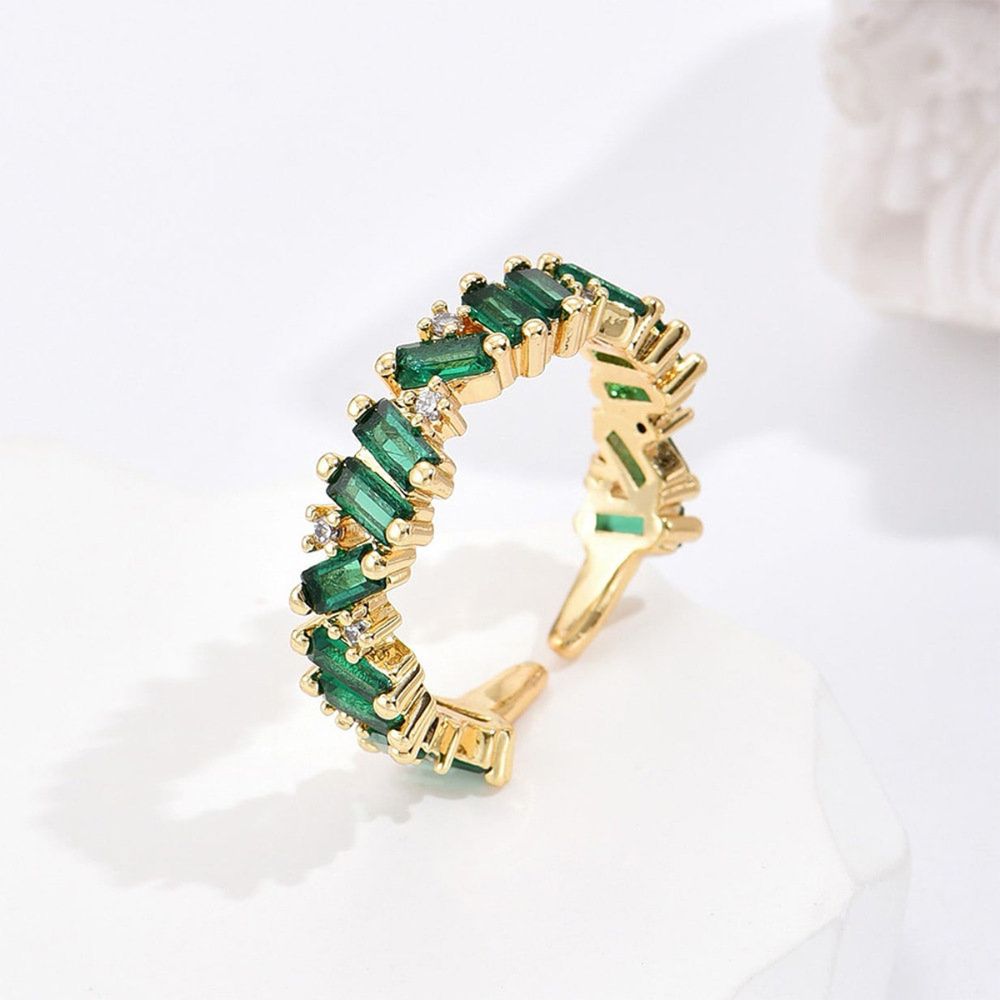 A:  The Emerald Baguette Ring is made from high quality gold plated copper with Zircon.